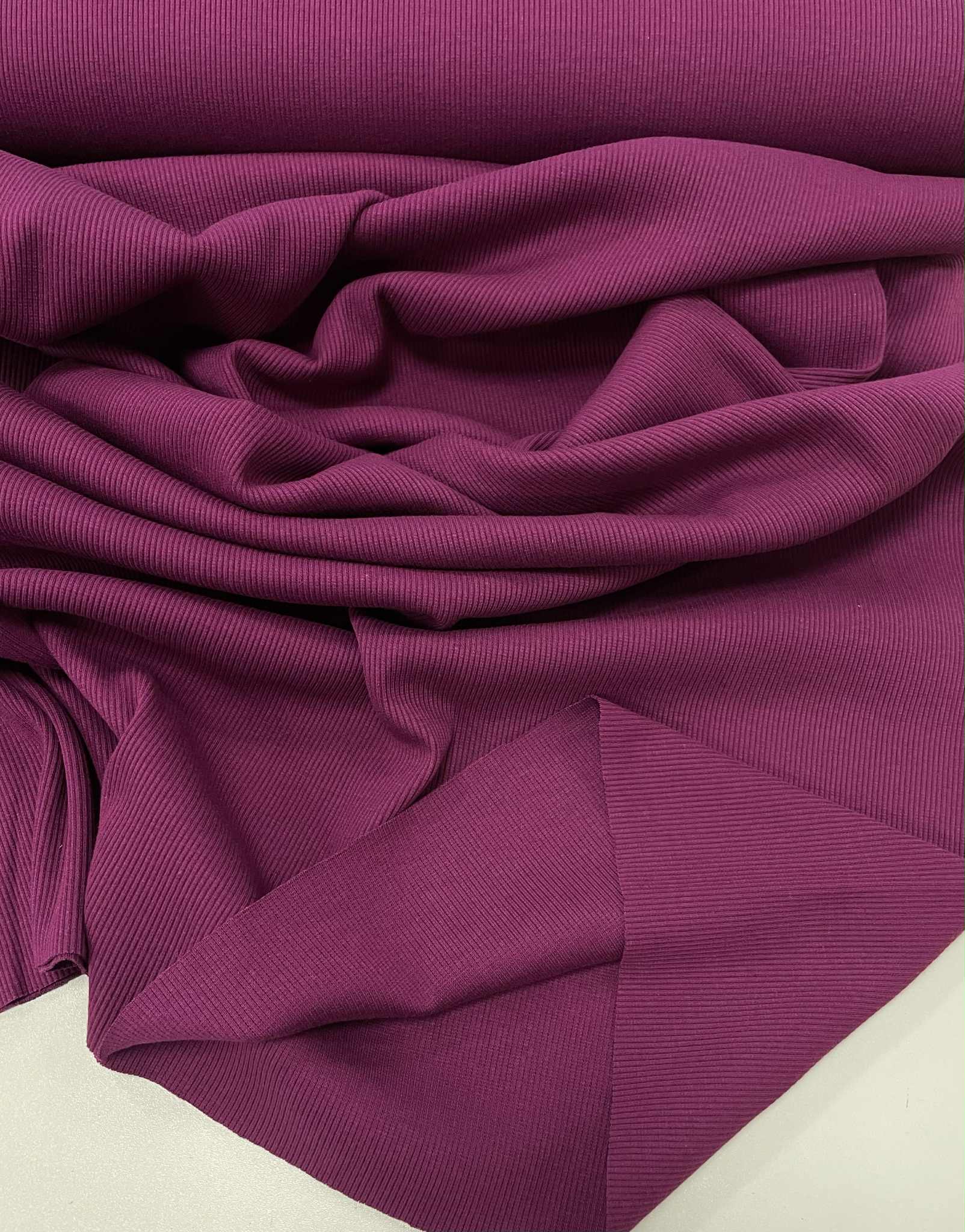 Plonesnis RIB trikotažas Plum – labai elastingas medvilninis audinys, panašus į megztą gumą. Audinys gaminamas iš medvilnės, tačiau jo sudėtyje yra nemažai elastano. Elastanas suteikia audiniui daugiau tamprumo, o pasiūtam rūbui padeda išsaugoti pradinę formą. Rib trikotažas ne tik natūralus bei malonus audinys, bet ir gerai sugeria bei išgarina drėgmę. Šis trikotažas dažniausiai naudojamas rūbų apdailai – rankogaliams, apykaklėms, kelnių klešnių apačioms užbaigti, ir pan. Kelnių juosmuo, apsiūtas šiuo elastingu trikotažu laikysis tvirčiau ant klubų. Pižamos rankogaliai ir kelnių apačia apsiūta tampriu trikotažu vaikučiui nesmuks ir jo neerzins, vaikas jausis patogiai ir maloniai. Tačiau iš šios medžiagos galima siūti ir sukneles, golfus, sijonus, bliuzonus, kepures. Rūbai iš šio trikotažo nesiglamžo, išskalbus išlaiko savo pradinę formą ir spalvą. Rib trikotažas internetu – tai aukščiausios kokybės, vidutinio storumo, tačiau ypatingai tamprus, minkštas, tvirtas ir malonus trikotažas. Kadangi šis trikotažas yra sertifikuotas, todėl tinkamas siūti ne tik suaugusiųjų rūbams, bet ir vaikams bei kūdikiams. Šis Rib trikotažas yra plonesnis, tinka vasariniams rūbams. Jį drąsiai galima derinti su plonu trikotažu (jersiu).