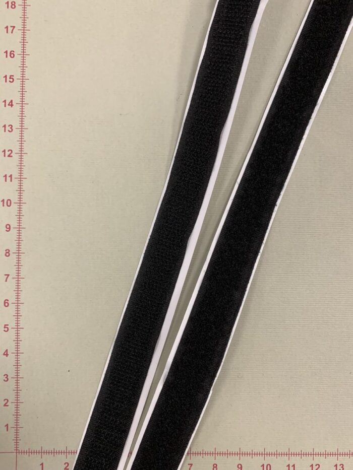 Priklijuojama Velcro (kontaktinė) juosta, Juoda, 16 mm – tai lipni juosta, kurią dažniausiai naudojame siuvant. Šios juostos yra sudarytos dviejų dalių/pusių: viena – kimbanti, o kita švelni.