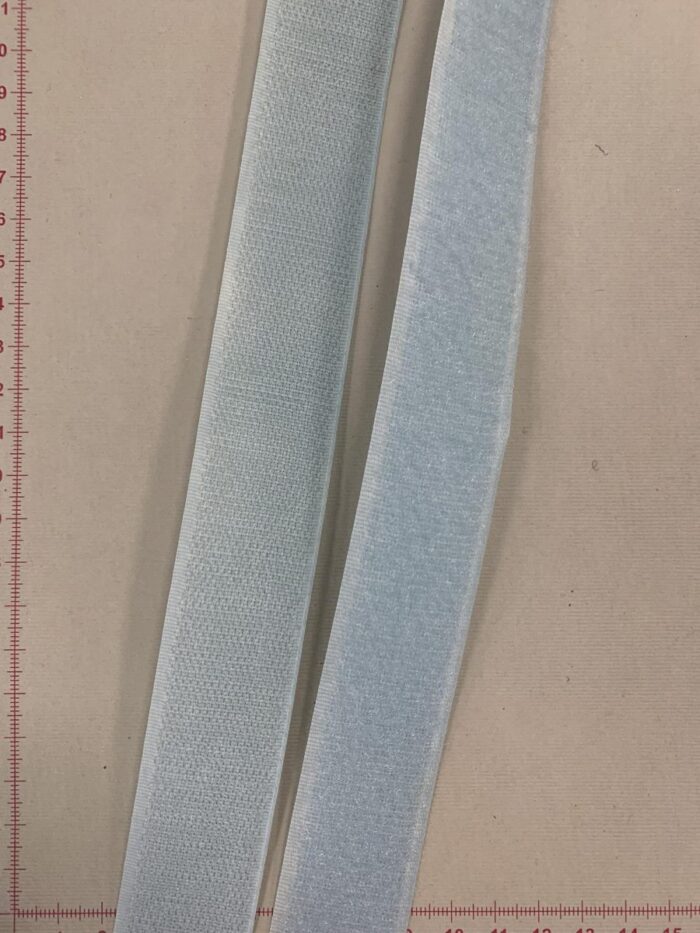 Prisiuvama Velcro juosta, Žydra, 30 mm – tai lipni juosta, kurią dažniausiai naudojame siuvant. Šios juostos yra sudarytos dviejų dalių/pusių: viena – kimbanti, o kita švelni.