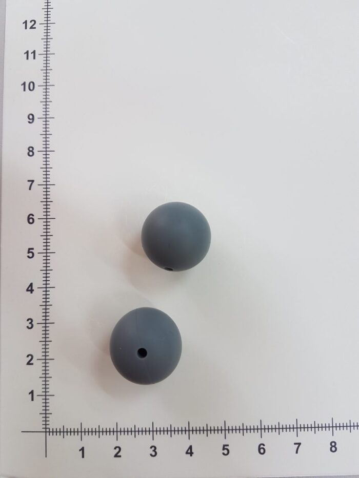 Silikoniniai karoliukai 19 mm, Pilki yra skirti rankdarbims. Dažniausiai naudojami verti kūdikio čiultuko laikikliui. Silikoniniai čiulptukų laikikliai tampa vis madingesni, nes yra daug patogesni priežiūros atžvilgiu, tuo pačiu malonesni patiems kūdikiams. Silikoniniai karoliukai yra minkšti, pagaminti iš saugaus maistinio silikono, be BPA, fosfatų, švino ir kitų kenksmingų medžiagų. Karoliukai atsparūs seilėms ir kitai drėgmei. Tai puiki pagalbinė priemonė dygstantiems dantukams. Minkštas silikonas nepažeidžia dantenų ir mažina diskomfortą dantukų dygimo laikotarpiu. Šiuos karoliukus galima naudoti ir papuošalų gamyboje: apyrankės, karoliai, įvairūs papuošaliukai, pagaminti iš silikoninių karoliukų atrodo žavingai, yra ilgalaikiai, o jų priežiūra nesudėtinga. Silikoninių karoliukų turime įvairaus skersmens (nuo 9 mm iki 19 mm), įvairių spalvų bei formų. Kūdikiui šiuos karoliukus lytėti yra saugu ir naudinga – liečiant skirtingas formas mažylis susipažįsta su pasauliu, plečia vaizduotę, taip lavėja ir jo smulkioji motorika. Išsirinkite karoliukus ir sukurkite išskirtinį čiulptuko ar kramtuko laikiklį savo kūdikiui!