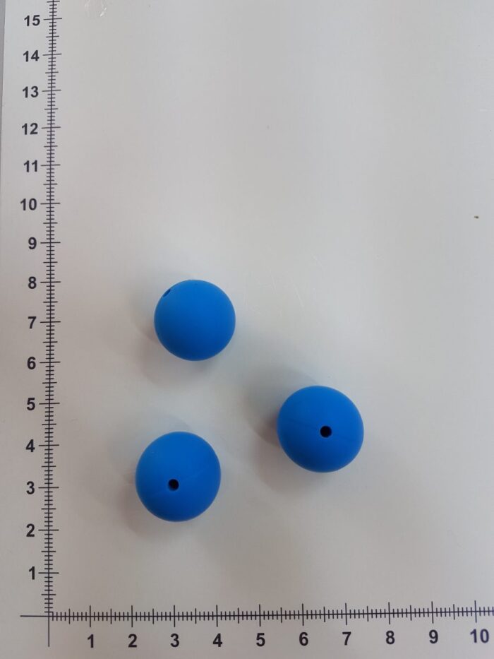 Silikoniniai karoliukai 19 mm, Ryškiai mėlyni yra skirti rankdarbims. Dažniausiai naudojami verti kūdikio čiultuko laikikliui. Silikoniniai čiulptukų laikikliai tampa vis madingesni, nes yra daug patogesni priežiūros atžvilgiu, tuo pačiu malonesni patiems kūdikiams. Silikoniniai karoliukai yra minkšti, pagaminti iš saugaus maistinio silikono, be BPA, fosfatų, švino ir kitų kenksmingų medžiagų. Karoliukai atsparūs seilėms ir kitai drėgmei. Tai puiki pagalbinė priemonė dygstantiems dantukams. Minkštas silikonas nepažeidžia dantenų ir mažina diskomfortą dantukų dygimo laikotarpiu. Šiuos karoliukus galima naudoti ir papuošalų gamyboje: apyrankės, karoliai, įvairūs papuošaliukai, pagaminti iš silikoninių karoliukų atrodo žavingai, yra ilgalaikiai, o jų priežiūra nesudėtinga. Silikoninių karoliukų turime įvairaus skersmens (nuo 9 mm iki 19 mm), įvairių spalvų bei formų. Kūdikiui šiuos karoliukus lytėti yra saugu ir naudinga – liečiant skirtingas formas mažylis susipažįsta su pasauliu, plečia vaizduotę, taip lavėja ir jo smulkioji motorika. Išsirinkite karoliukus ir sukurkite išskirtinį čiulptuko ar kramtuko laikiklį savo kūdikiui!