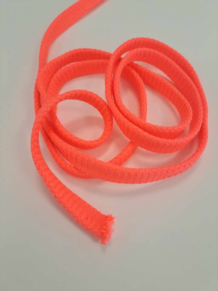 Sintetinė plokščia virvelė NEON rožinė, 10 mm dažniausiai yra naudojama siuvimui ir rankdarbiams: bižuterijos gamybai, papuošalų gamybai, pynimui, rūbų dekoravimui ir pan. Virvelė yra pinta šešiomis vijomis ir su užpildu, tvirta, spalvota. Šios virvelės dažniai naudojamos laisvalaikio rūbų dekoravimui ir apdailai: sijonų, kelnių, šortų, bridžų liemeniui sutvirtinti, bliuzonų, liemenių, megztukų apačiai sutraukti bei gobtuvui ar apykaklei reguliuoti. Įvairios sintetinės virvelės naudojamos ne tik siuvimui, bet ir rankdarbiams – jos dažniausiai yra labai plataus panaudojimo – virvelės atlieka ir daug pagalbinių funkcijų buityje. Pavyzdžiui, tokią sintetinę virvelę galima naudoti ir rūbų džiovimui, ir ūkio darbuose, ir bet kokiam sutvirtinimui ar surišimui, nes virvelė nors ir yra minkšta, bet yra labai tvirta. Virvelės yra ypatingai tvirtos, įvairių ryškių ir pastelinių spalvų. Daug virvelių spalvų atitinka mūsų turimo trikotažo spalvas. Virvelės storis – 10mm. Šias virveles lengva naudoti, nes jos yra minkšos ir lanksčios.