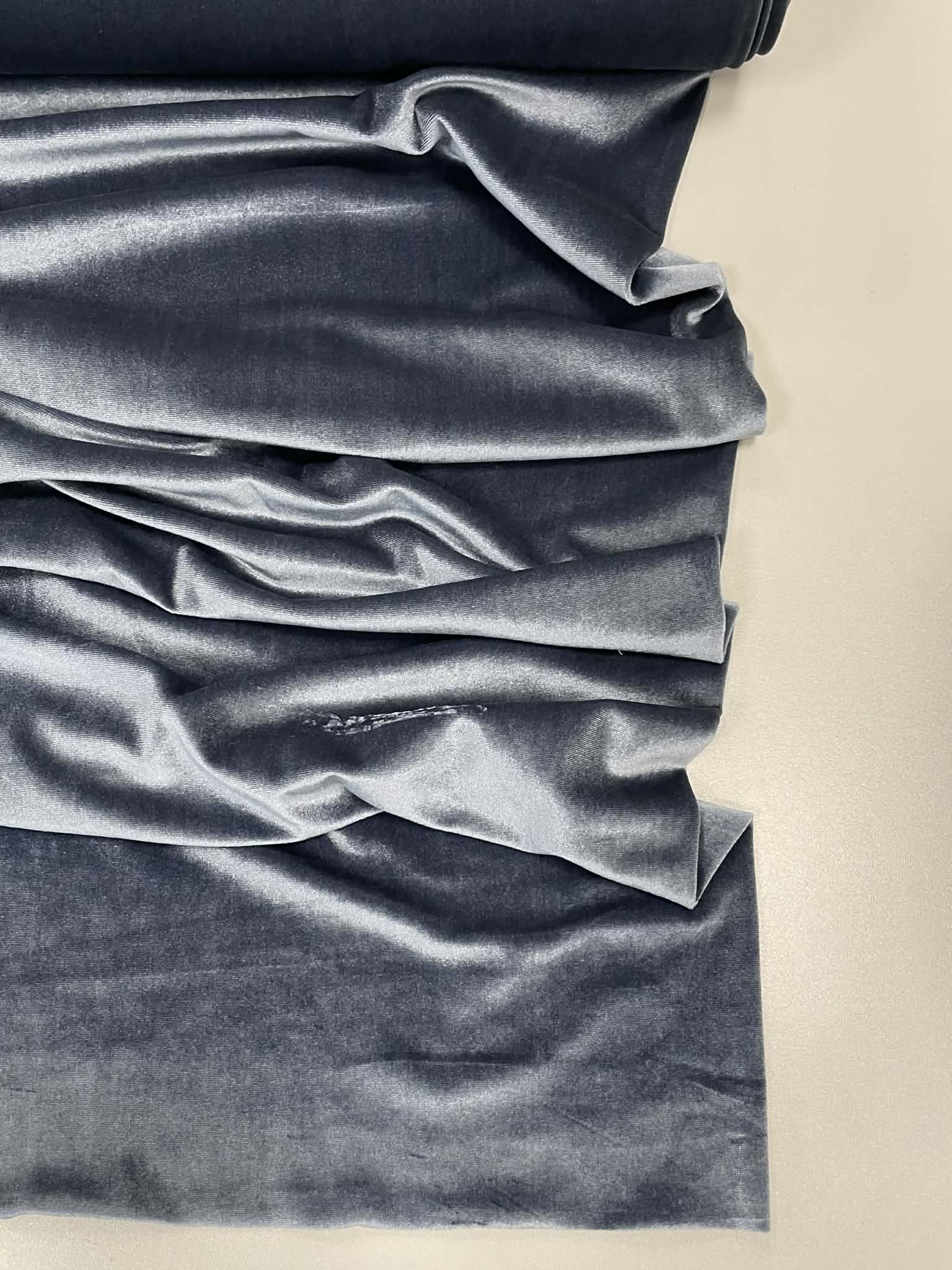 Sintetinis veliūras Indigo – švelnus ir minkštas, malonus liesti, labai komfortiškas, lengvas, gaminamas iš pavienių karštinių verpalų. Būdingas tankus trumpų pūkų paviršius. Veliūras – prabangi ir lepinanti medžiaga su minkštu pūkeliu, blizganti, dėvisi maloniai, atrodo prabangiai. Trikotažas labai tvirtas ir elastingas, atsparus susidėvėjimui, nepraranda formos ir puikiai šildo šaltu oru. Dėl šių savybių naudojamas moteriškiems ir vyriškiems paltams, kepurėms, šalikams, sportiniams kostiumams, sijonams, švarkeliams ar suknelėms siūti. Iš jo pasiūtos suknelės yra itin puošnios, juo vilkinti dama atrodo kaip karalienė. Vis dėl to, veliūro pūkeliai laikui bėgant nusitrina, todėl šiam audiniui reikia rūpestingos priežiūros. Šios medžiagos rūbai yra linkę sugerti dulkes. Todėl mažas dėmes rekomenduojame valyti sudrėkinta ir gerai nusausinta porolonine kempine. Galima skalbti ir skalbyklėje, tačiau kad gaminys neprarastų savo spalvos, kokybės ir formos nerekomenduojame skalbiant viršyti 30 °C temperatūros.