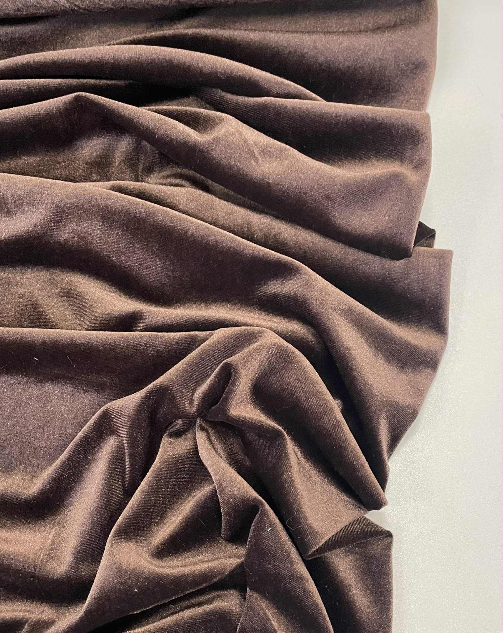 Sintetinis veliūras Rudas – švelnus ir minkštas, malonus liesti, labai komfortiškas, lengvas, gaminamas iš pavienių karštinių verpalų. Būdingas tankus trumpų pūkų paviršius. Veliūras – prabangi ir lepinanti medžiaga su minkštu pūkeliu, blizganti, dėvisi maloniai, atrodo prabangiai. Trikotažas labai tvirtas ir elastingas, atsparus susidėvėjimui, nepraranda formos ir puikiai šildo šaltu oru. Dėl šių savybių naudojamas moteriškiems ir vyriškiems paltams, kepurėms, šalikams, sportiniams kostiumams, sijonams, švarkeliams ar suknelėms siūti. Iš jo pasiūtos suknelės yra itin puošnios, juo vilkinti dama atrodo kaip karalienė. Vis dėl to, veliūro pūkeliai laikui bėgant nusitrina, todėl šiam audiniui reikia rūpestingos priežiūros. Šios medžiagos rūbai yra linkę sugerti dulkes. Todėl mažas dėmes rekomenduojame valyti sudrėkinta ir gerai nusausinta porolonine kempine. Galima skalbti ir skalbyklėje, tačiau kad gaminys neprarastų savo spalvos, kokybės ir formos nerekomenduojame skalbiant viršyti 30 °C temperatūros.