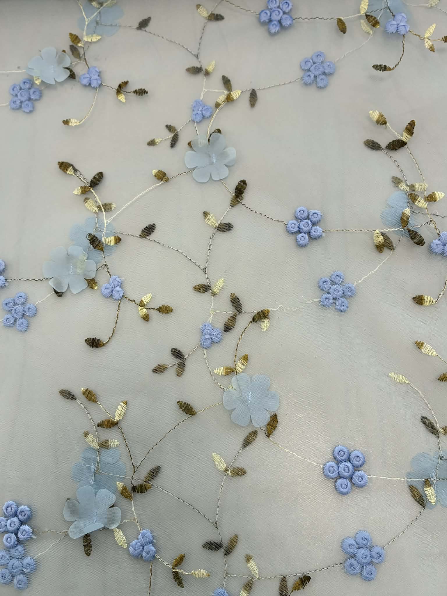 Siuvinėtas tiulis su gėlytėmis, žydras