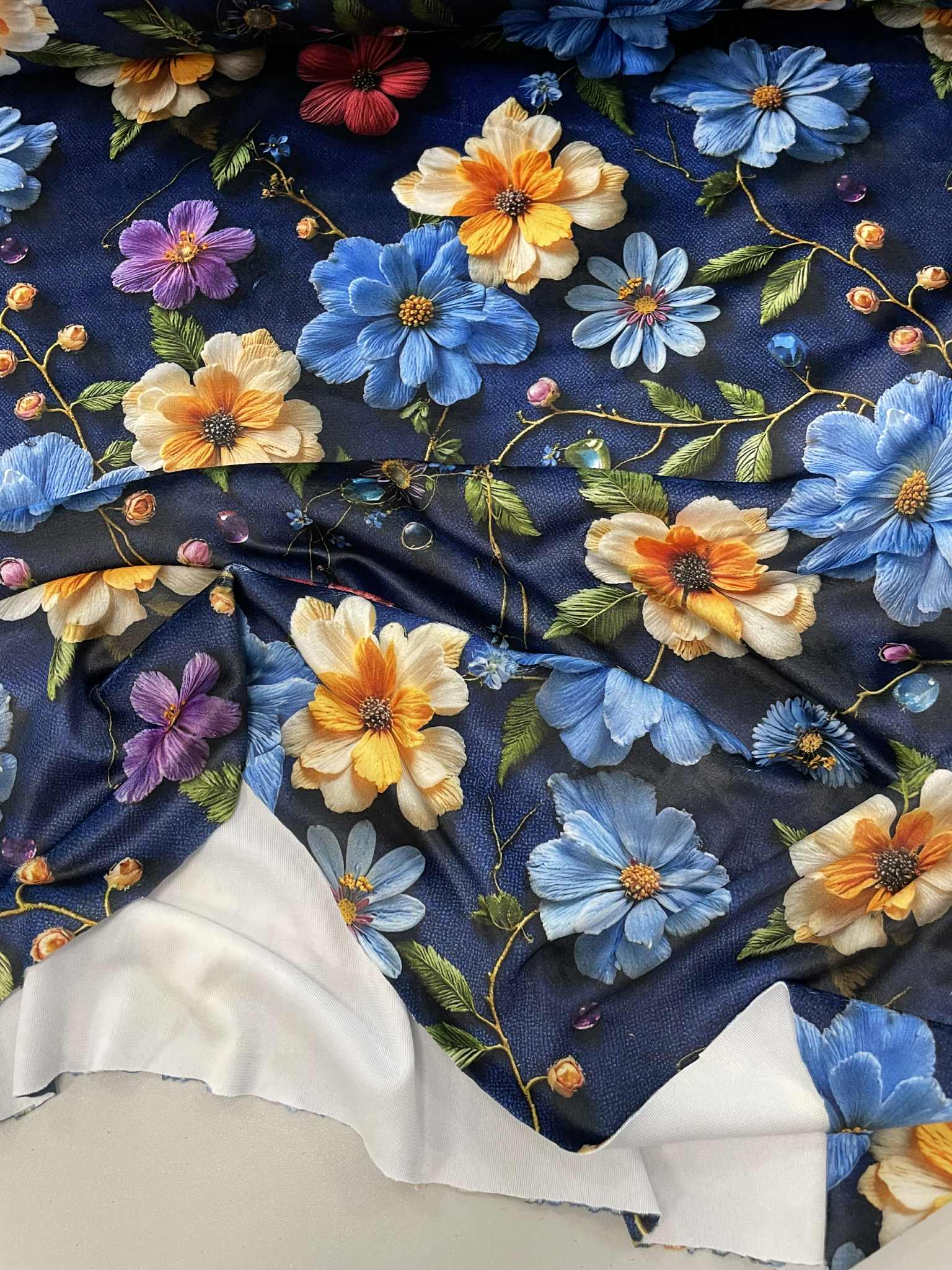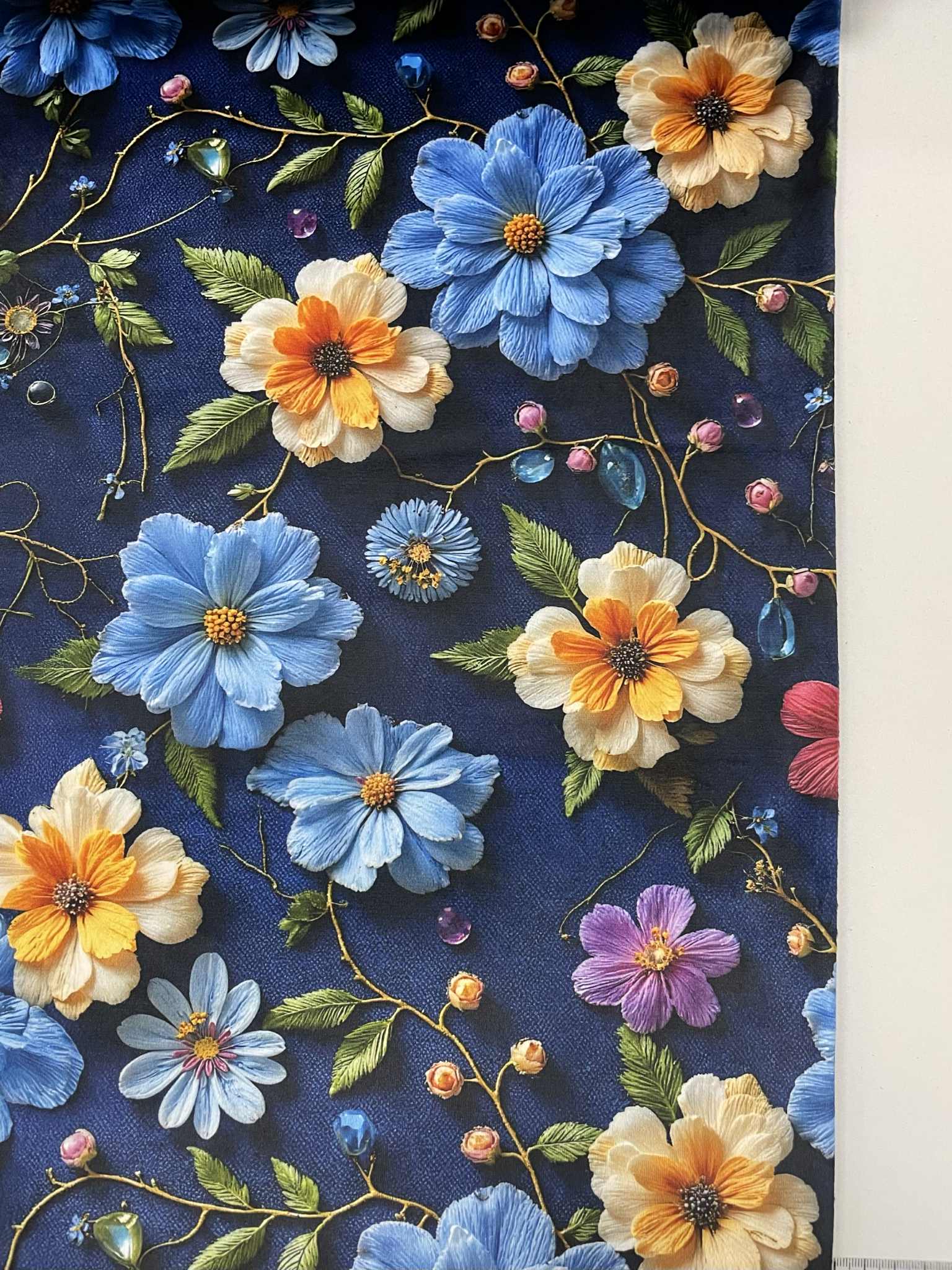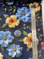 Soft veliūras su skaitmenine spauda Gėlės mėlyname fone