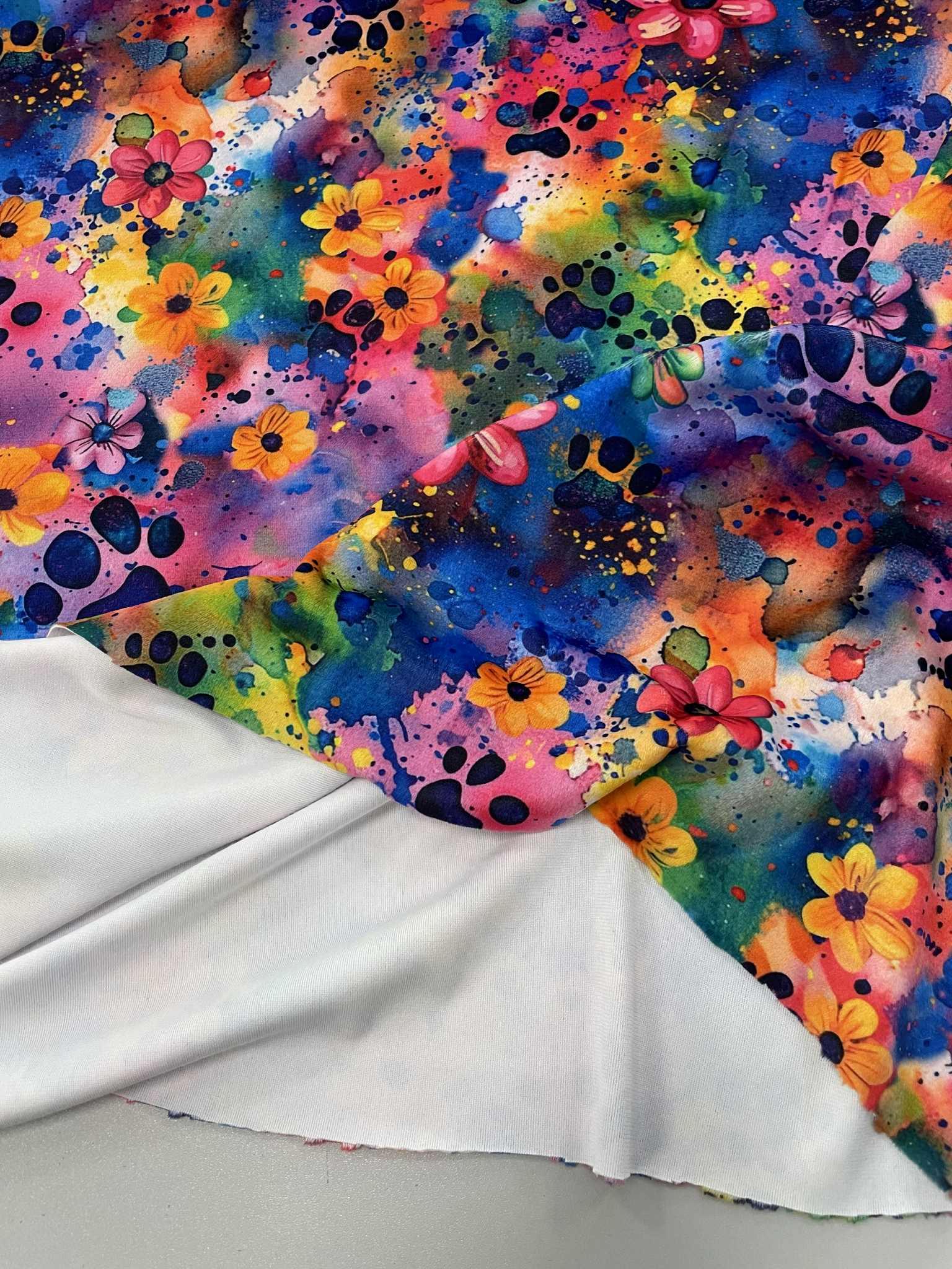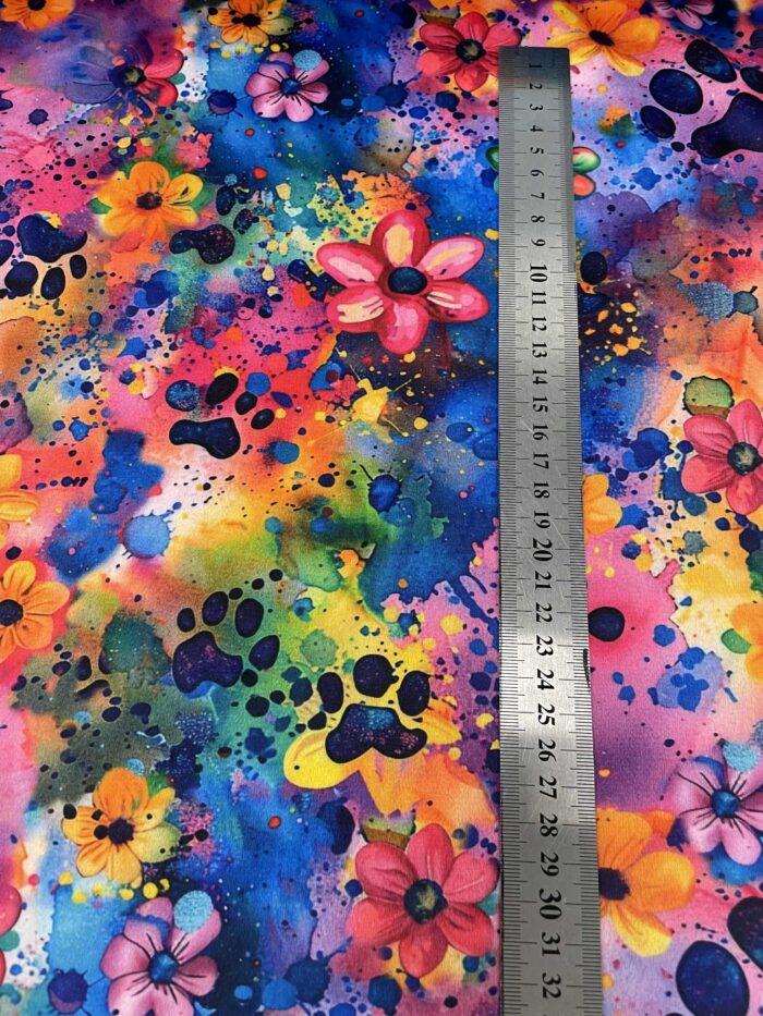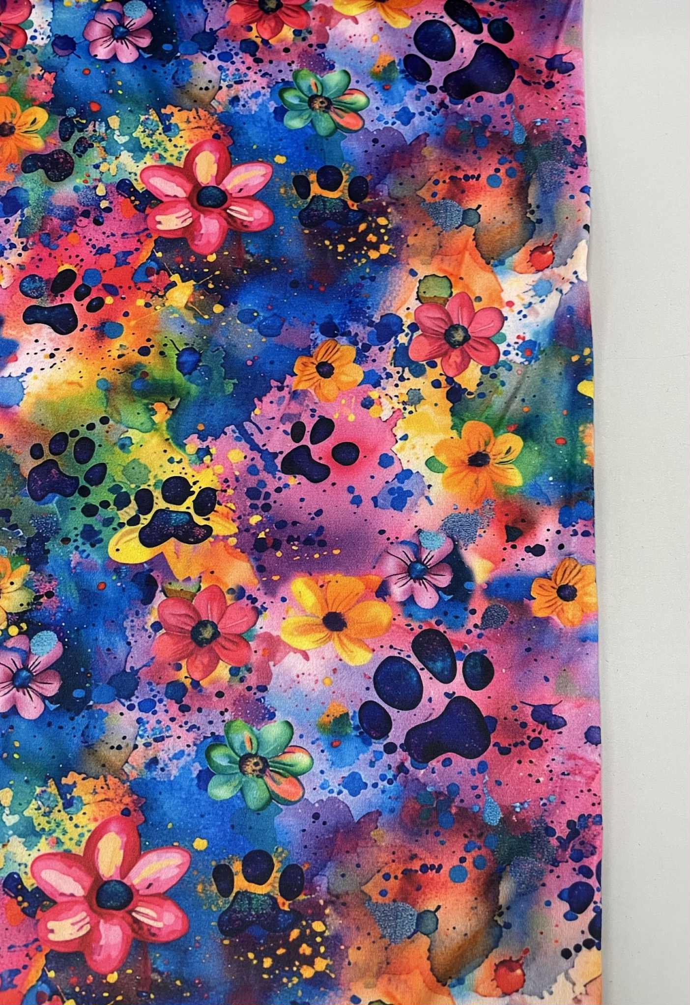 Soft veliūras su skaitmenine spauda Spalvotos gėlytės ir pėdutės