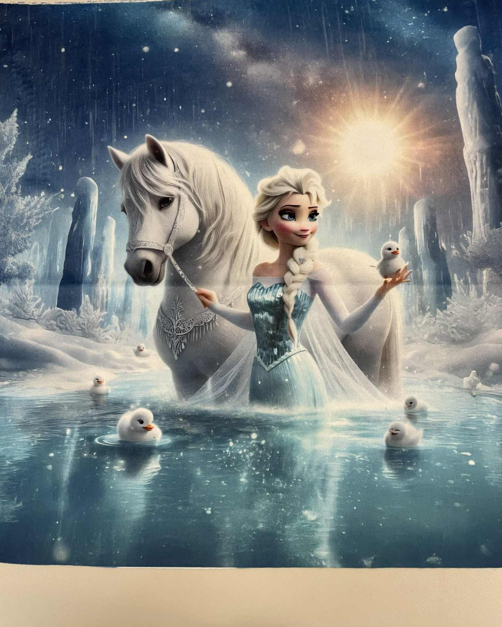 Soft veliūro, skaitmeninės spaudos panelė Elza ir žirgas