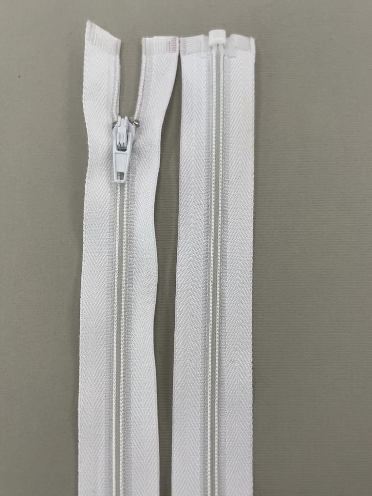 Spiralinis išsegamas užtrauktukas “Baltas”, 40 cm . Gali būti naudojamas sijonų, suknelių, kelnių siuvime, taip pat kaip dekoracija.