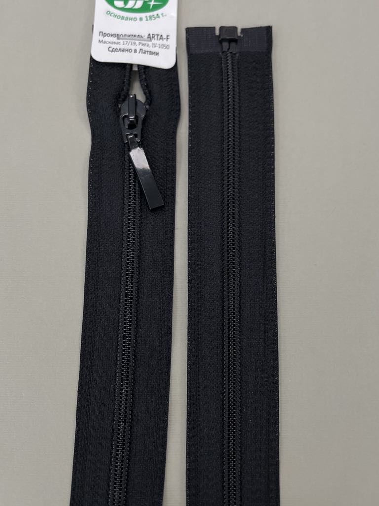 Spiralinis išsegamas užtrauktukas “Juodas”, 55 cm . Gali būti naudojamas sijonų, suknelių, kelnių siuvime, taip pat kaip dekoracija.