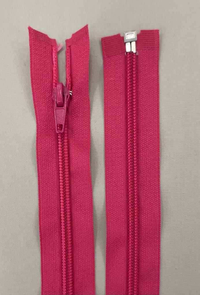 Spiralinis išsegamas užtrauktukas “Ryški rožinė”, 35 cm . Gali būti naudojamas sijonų, suknelių, kelnių siuvime, taip pat kaip dekoracija.