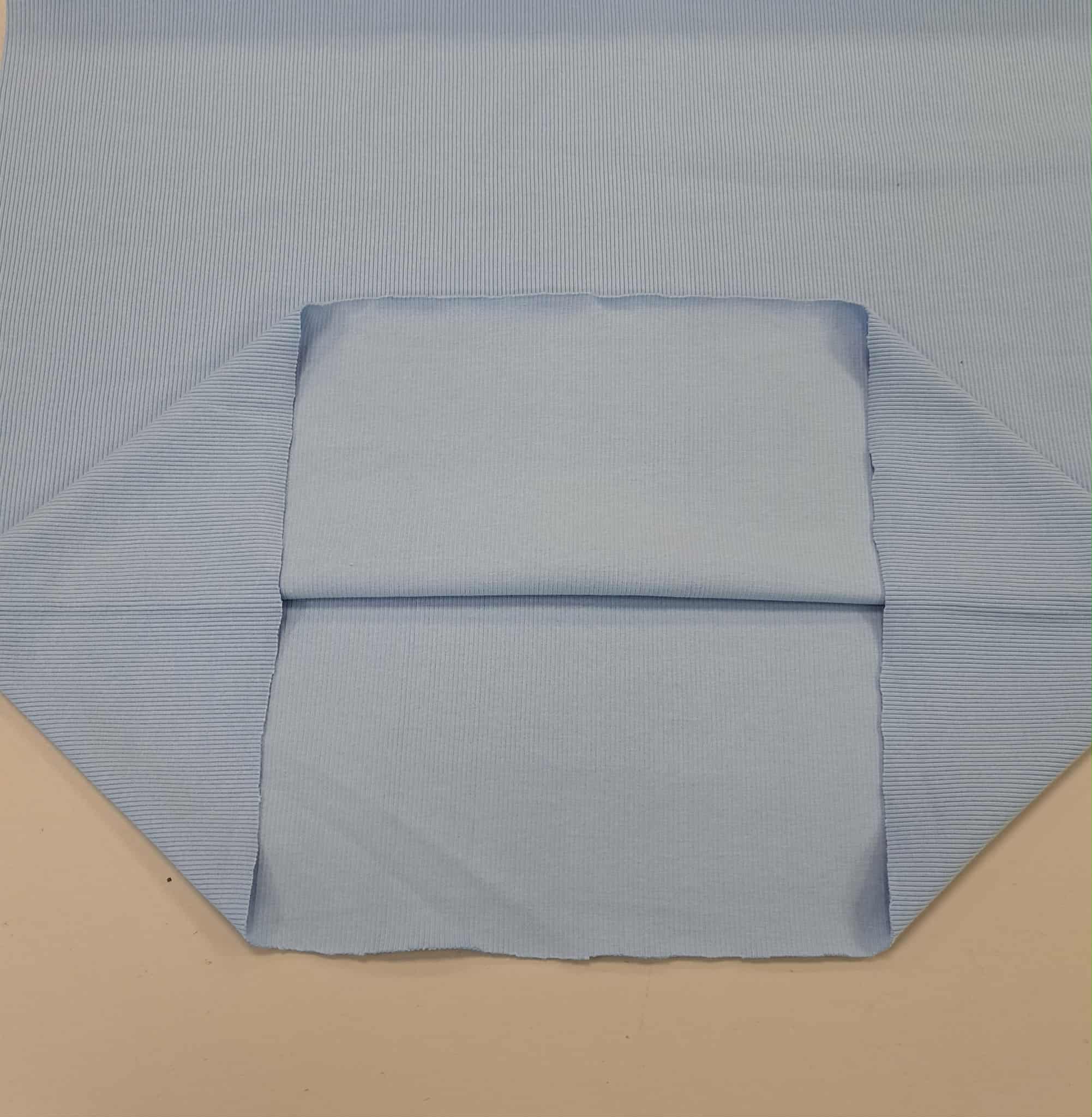 Storas Rib trikotažas Žydras– labai elastingas medvilninis audinys, panašus į megztą gumą. Audinys gaminamas iš medvilnės, tačiau jo sudėtyje yra nemažai elastano. Elastanas suteikia audiniui daugiau tamprumo, o pasiūtam rūbui padeda išsaugoti pradinę formą. Rib trikotažas ne tik natūralus bei malonus audinys, bet ir gerai sugeria bei išgarina drėgmę. Šis trikotažas dažniausiai naudojamas rūbų apdailai – rankogaliams, apykaklėms, kelnių klešnių apačioms užbaigti, ir pan. Kelnių juosmuo, apsiūtas šiuo elastingu trikotažu laikysis tvirčiau ant klubų. Pižamos rankogaliai ir kelnių apačia apsiūta tampriu trikotažu vaikučiui nesmuks ir jo neerzins, vaikas jausis patogiai ir maloniai. Tačiau iš šios medžiagos galima siūti ir sukneles, golfus, sijonus, bliuzonus, kepures. Rūbai iš šio trikotažo nesiglamžo, išskalbus išlaiko savo pradinę formą ir spalvą. Rib trikotažas internetu – tai aukščiausios kokybės, vidutinio storumo, tačiau ypatingai tamprus, minkštas, tvirtas ir malonus trikotažas. Kadangi šis trikotažas yra sertifikuotas, todėl tinkamas siūti ne tik suaugusiųjų rūbams, bet ir vaikams bei kūdikiams.