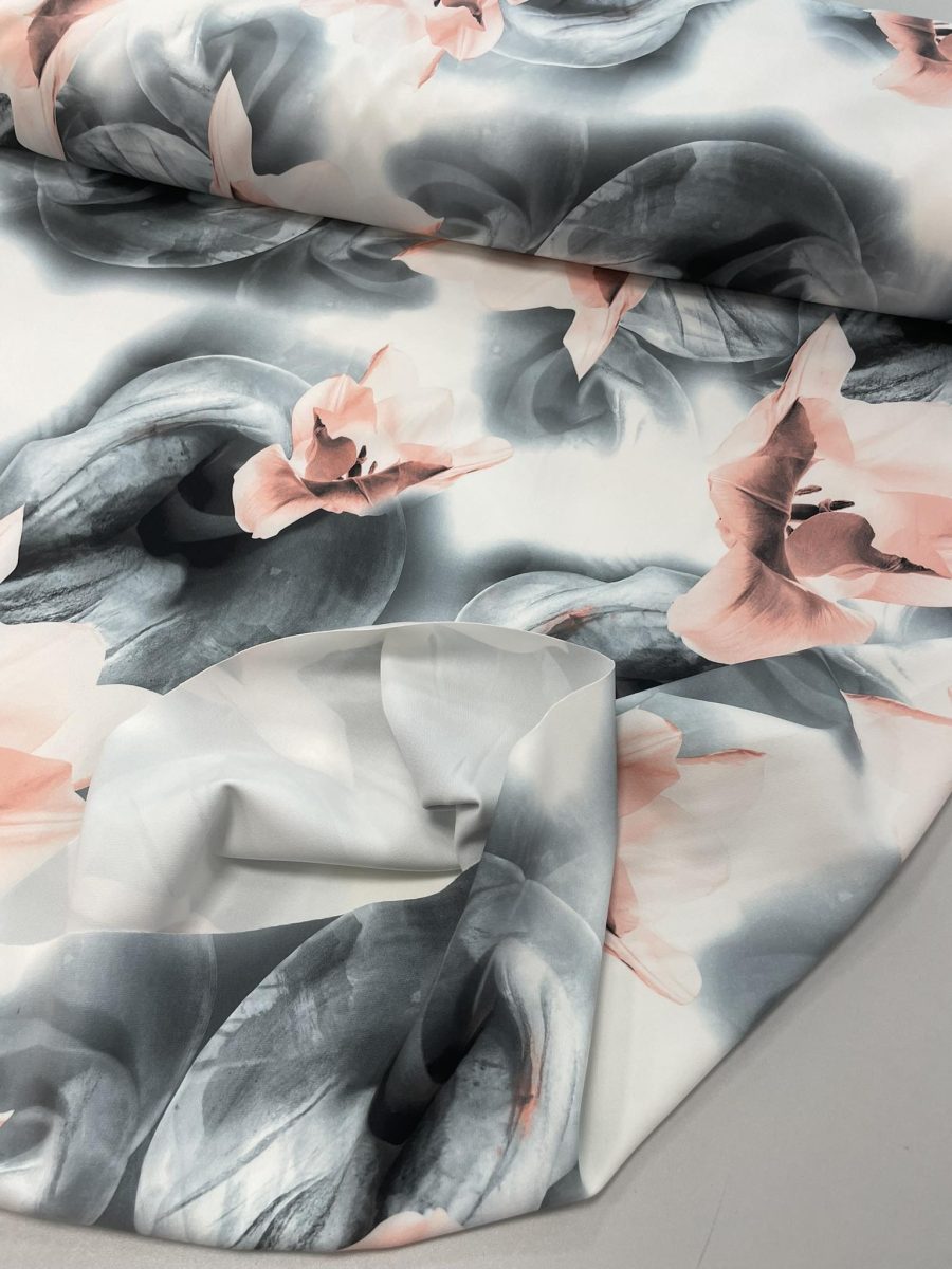 Suknelinis Barbie audinys Pilkšvas, rausvos gėlės– tai gražiai krentantis, šiek tiek elastingas, nepermatomas, praktiškai nesiglamžantis audinys. Barbie audinys neveltui yra vadinamas sukneliniu, nes pasirinkę jį suknelės siuvimui, o dar priderinus nėrinių ar gipiūro tikrai atrodys elegantiškai ir nereiks rūpintis dėl suknelės glamžymosi. Dar kartais šis audinys yra vadinamas Marchiano audiniu. Barbie medžiagos gramatūra gali būti įvairi, tačiau jis yra pakankamai tankus, nepersišviečiantis. Šį audinį labai lengva prižiūrėti, skalbti nesudėtinga, dėl savo sudėties jis greitai džiūsta. Be suknelių, iš jo galite pasiūti palaidinę, tuniką, sijoną, kelnės. Jis puikiai tiks tiek vasarinių tiek kitų sezonų rūbų siuvimui, tačiau margaspalviais raštais išmargintas barbie idealiausias vasarinei, vėjyje besiplaikstančiai suknelei, palaidinei ar ilgam sijonui.