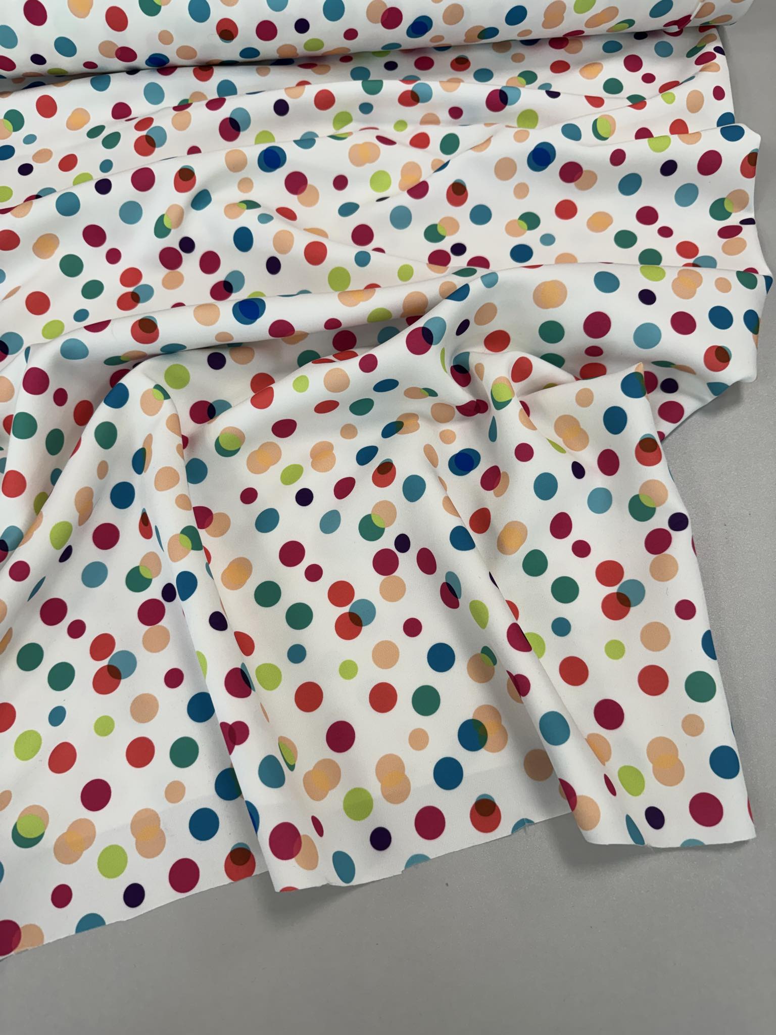 Suknelinis Barbie audinys Spalvoti burbuliukai – tai gražiai krentantis, šiek tiek elastingas, nepermatomas, praktiškai nesiglamžantis audinys. Barbie audinys neveltui yra vadinamas sukneliniu, nes pasirinkę jį suknelės siuvimui, o dar priderinus nėrinių ar gipiūro tikrai atrodys elegantiškai ir nereiks rūpintis dėl suknelės glamžymosi. Dar kartais šis audinys yra vadinamas Marchiano audiniu. Barbie medžiagos gramatūra gali būti įvairi, tačiau jis yra pakankamai tankus, nepersišviečiantis. Šį audinį labai lengva prižiūrėti, skalbti nesudėtinga, dėl savo sudėties jis greitai džiūsta. Be suknelių, iš jo galite pasiūti palaidinę, tuniką, sijoną, kelnės. Jis puikiai tiks tiek vasarinių tiek kitų sezonų rūbų siuvimui, tačiau margaspalviais raštais išmargintas barbie idealiausias vasarinei, vėjyje besiplaikstančiai suknelei, palaidinei ar ilgam sijonui.