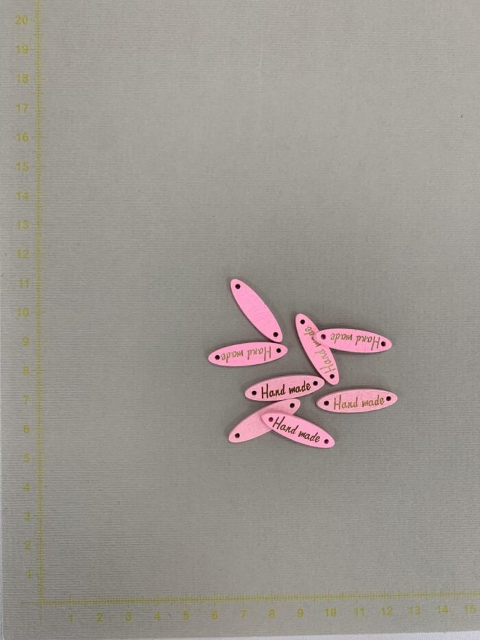 Šviesiai rožinė medinė etiketė Hand made, pailga