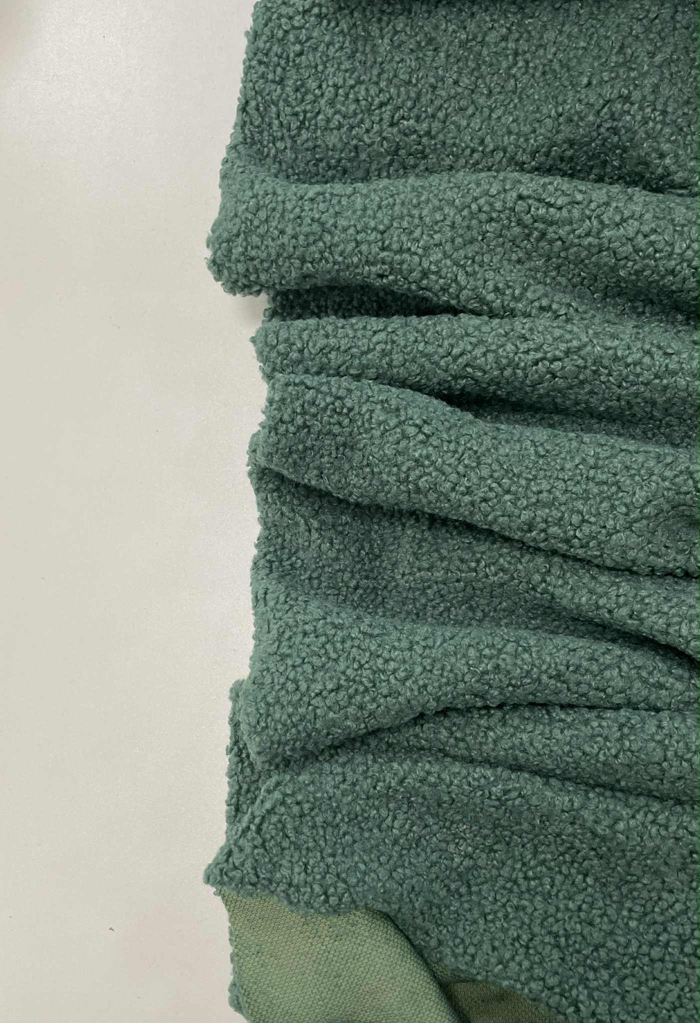 Teddy medžiaga Žalia. Tai neilgo plauko dirbtinio pluošto kailiuką primenanti medžiaga. Teddy medžiagos pavadinimas siejamas su žaislinį meškiuką primenančios medžiagos. Turbūt visi esat matė trumpo garbanoto kailio mažą žaislinį meškiuką. Tačiau dabar šios teddy medžiagos panaudojimas yra gerokai platesni snei tik žaisliukų siuvimui. Populiarėja rūbais būtent iš teddy medžiagos, iš jos siuvami ir bliuzonai, sportiniai kostiumėliai, viršutiniai rūbai, taip pat medžiagą naudojama kepurių ir rūbų dekoravimui. Nors medžiagos sudėtyje nėra elastano ji puikiai tempiasi, nes yra trikotažinio pagrindo. Medžiagso mezgimas tvirtas, o plaukas ant teddy medžiagos tankus, garbanotas, malonus liesti.