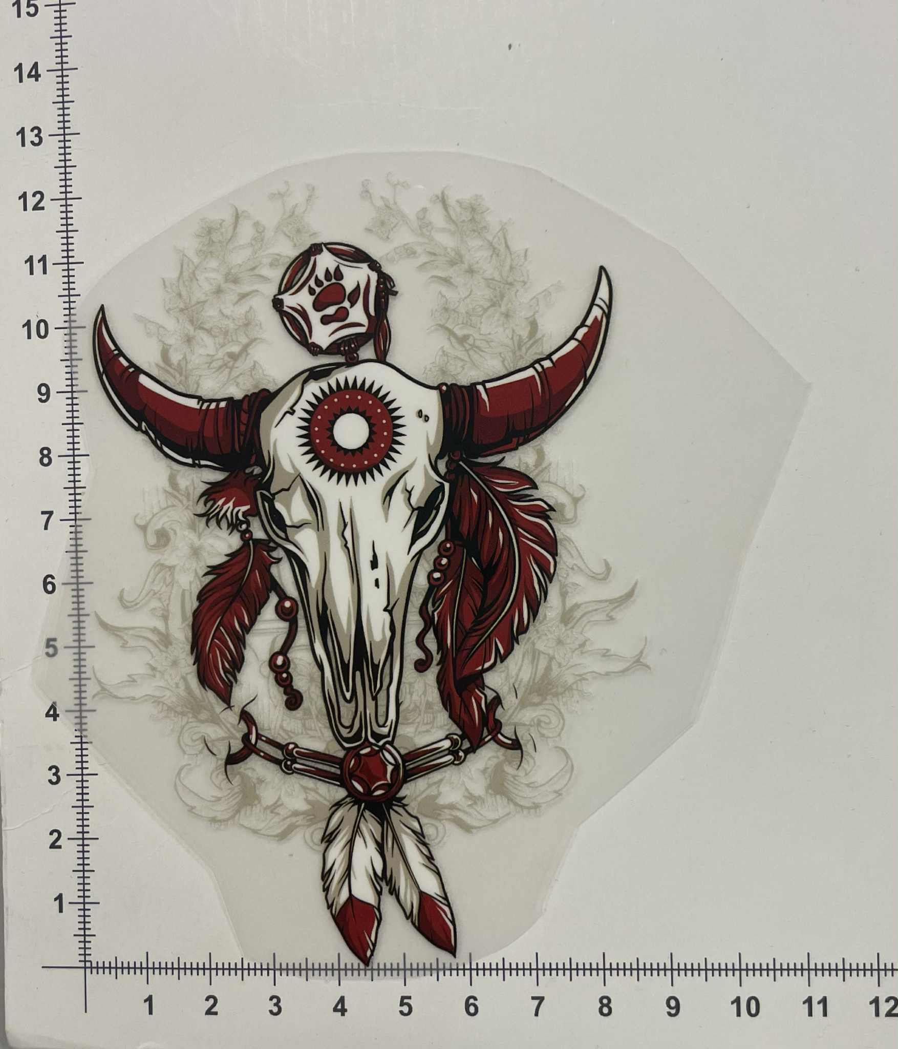 Termoaplikacija Jaučio skeletas, maža – tai dekoratyvinė aplikacija, prilyginama lygintuvu. Ši aplikacija yra su termo sluoksniu kitoje pusėje. Aplikacija labai lengvai pritvirtinama lygintuvo pagalba – ją tereikia pridėti prie rūbo, o termo sluoksnyje esantys klijai ima lydytis nuo lygintuvo karščio. Alikaciją reikia pridėti prie norimos rūbo vietos, ją būtina uždengti audeklo gabalėliu ir tik tada lyginti karštu 130-150 laipsnių lygintuvu, be garų (apie 20-30 sekundžių).Šios termoaplikacijos tinka dekoruoti visus rūbus: palaidinukes, maikutes, sukneles, tunikas, marškinukus, liemenes, džemperius ar net kepures. Termoaplikacijos naujiems rūbams suteikti puošnumo, žaismingumo, išskirtinumo. Arba priešingai – atnaujina jau padėvėtus rūbus, užlopo nusidėvėjimus arba nepatinkančias rūbo vietas, defektus. Aplikacijos neturi amžiaus cenzo – jos tinka tiek vaikams, tiek ir suaugusiems. Aplikacijos būna įvairių dydžių bei spalvų. Niekada nedėkite lygintuvo tiesiai ant aplikacijos.