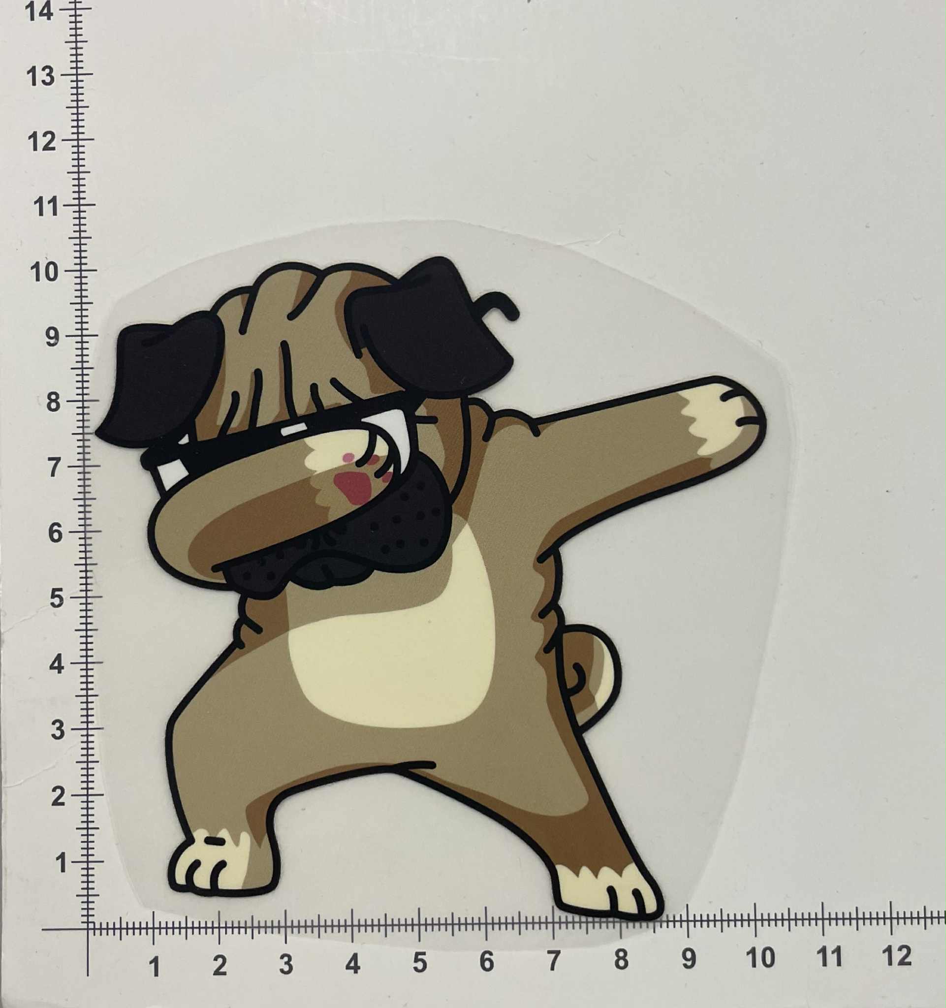 Termoaplikacija Mopsas debina, maža – tai dekoratyvinė aplikacija, prilyginama lygintuvu. Ši aplikacija yra su termo sluoksniu kitoje pusėje. Aplikacija labai lengvai pritvirtinama lygintuvo pagalba – ją tereikia pridėti prie rūbo, o termo sluoksnyje esantys klijai ima lydytis nuo lygintuvo karščio. Alikaciją reikia pridėti prie norimos rūbo vietos, ją būtina uždengti audeklo gabalėliu ir tik tada lyginti karštu 130-150 laipsnių lygintuvu, be garų (apie 20-30 sekundžių).Šios termoaplikacijos tinka dekoruoti visus rūbus: palaidinukes, maikutes, sukneles, tunikas, marškinukus, liemenes, džemperius ar net kepures. Termoaplikacijos naujiems rūbams suteikti puošnumo, žaismingumo, išskirtinumo. Arba priešingai – atnaujina jau padėvėtus rūbus, užlopo nusidėvėjimus arba nepatinkančias rūbo vietas, defektus. Aplikacijos neturi amžiaus cenzo – jos tinka tiek vaikams, tiek ir suaugusiems. Aplikacijos būna įvairių dydžių bei spalvų. Niekada nedėkite lygintuvo tiesiai ant aplikacijos.