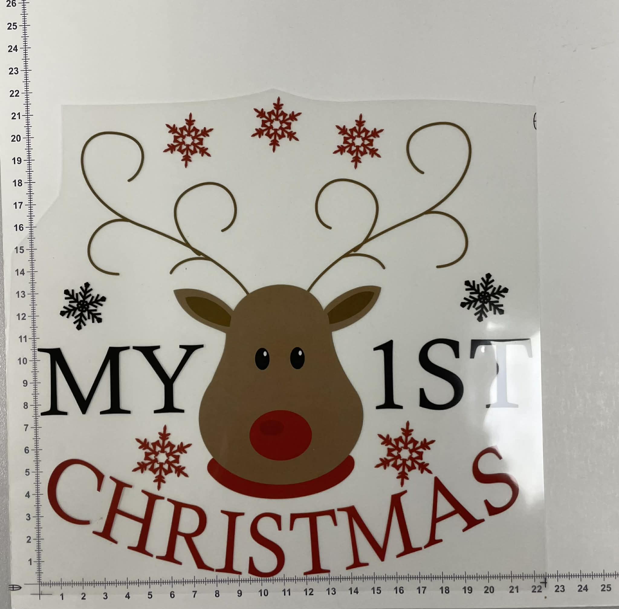 Termoaplikacija My 1st Christmas, didelė – tai dekoratyvinė aplikacija, prilyginama lygintuvu. Ši aplikacija yra su termo sluoksniu kitoje pusėje. Aplikacija labai lengvai pritvirtinama lygintuvo pagalba – ją tereikia pridėti prie rūbo, o termo sluoksnyje esantys klijai ima lydytis nuo lygintuvo karščio. Alikaciją reikia pridėti prie norimos rūbo vietos, ją būtina uždengti audeklo gabalėliu ir tik tada lyginti karštu 130-150 laipsnių lygintuvu, be garų (apie 20-30 sekundžių).Šios termoaplikacijos tinka dekoruoti visus rūbus: palaidinukes, maikutes, sukneles, tunikas, marškinukus, liemenes, džemperius ar net kepures. Termoaplikacijos naujiems rūbams suteikti puošnumo, žaismingumo, išskirtinumo. Arba priešingai – atnaujina jau padėvėtus rūbus, užlopo nusidėvėjimus arba nepatinkančias rūbo vietas, defektus. Aplikacijos neturi amžiaus cenzo – jos tinka tiek vaikams, tiek ir suaugusiems. Aplikacijos būna įvairių dydžių bei spalvų. Niekada nedėkite lygintuvo tiesiai ant aplikacijos.