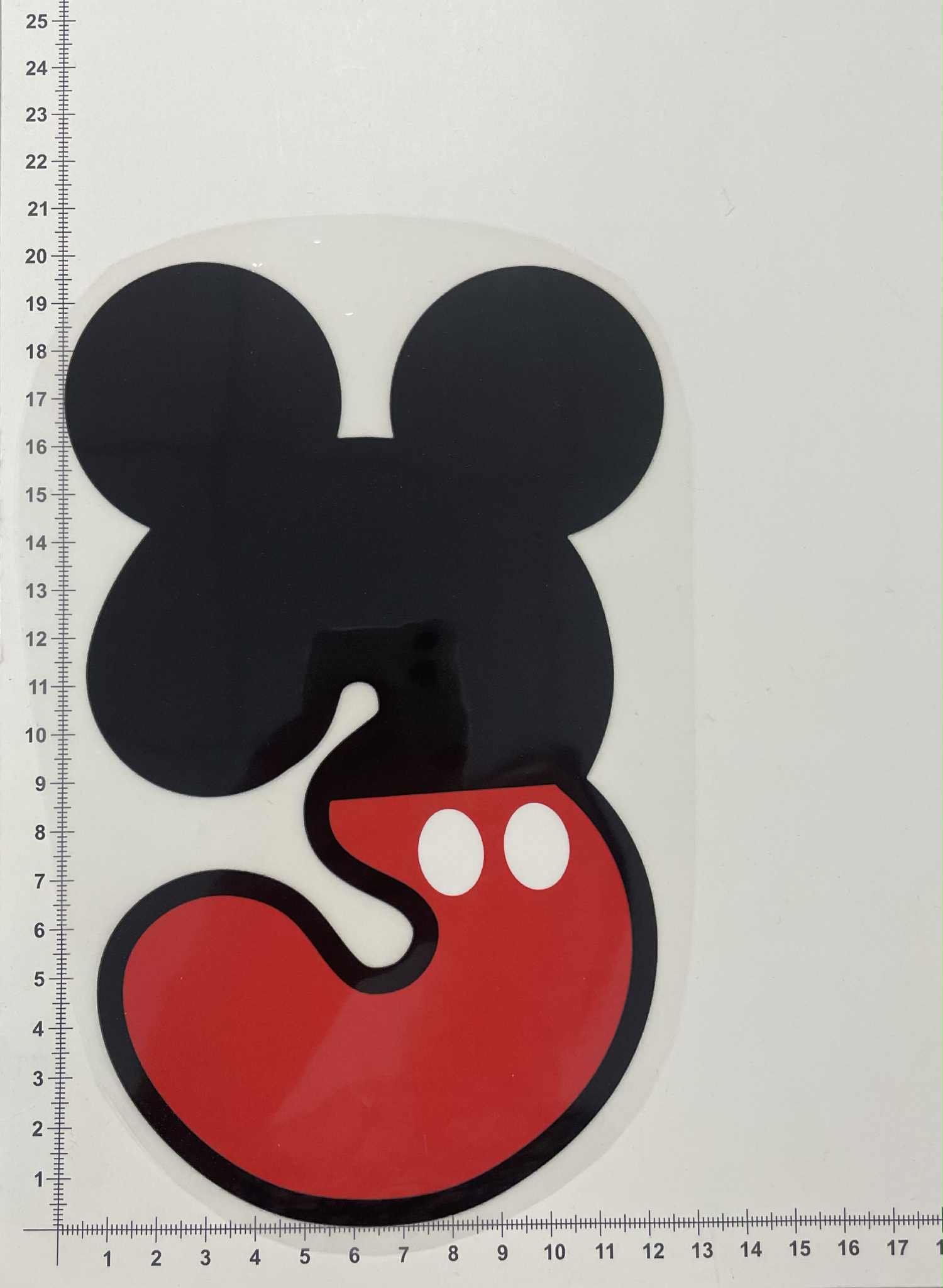Termoaplikacija skaičius 3, didelė – tai dekoratyvinė aplikacija, prilyginama lygintuvu. Ši aplikacija yra su termo sluoksniu kitoje pusėje. Aplikacija labai lengvai pritvirtinama lygintuvo pagalba – ją tereikia pridėti prie rūbo, o termo sluoksnyje esantys klijai ima lydytis nuo lygintuvo karščio. Alikaciją reikia pridėti prie norimos rūbo vietos, ją būtina uždengti audeklo gabalėliu ir tik tada lyginti karštu 130-150 laipsnių lygintuvu, be garų (apie 20-30 sekundžių).Šios termoaplikacijos tinka dekoruoti visus rūbus: palaidinukes, maikutes, sukneles, tunikas, marškinukus, liemenes, džemperius ar net kepures. Termoaplikacijos naujiems rūbams suteikti puošnumo, žaismingumo, išskirtinumo. Arba priešingai – atnaujina jau padėvėtus rūbus, užlopo nusidėvėjimus arba nepatinkančias rūbo vietas, defektus. Aplikacijos neturi amžiaus cenzo – jos tinka tiek vaikams, tiek ir suaugusiems. Aplikacijos būna įvairių dydžių bei spalvų. Niekada nedėkite lygintuvo tiesiai ant aplikacijos.
