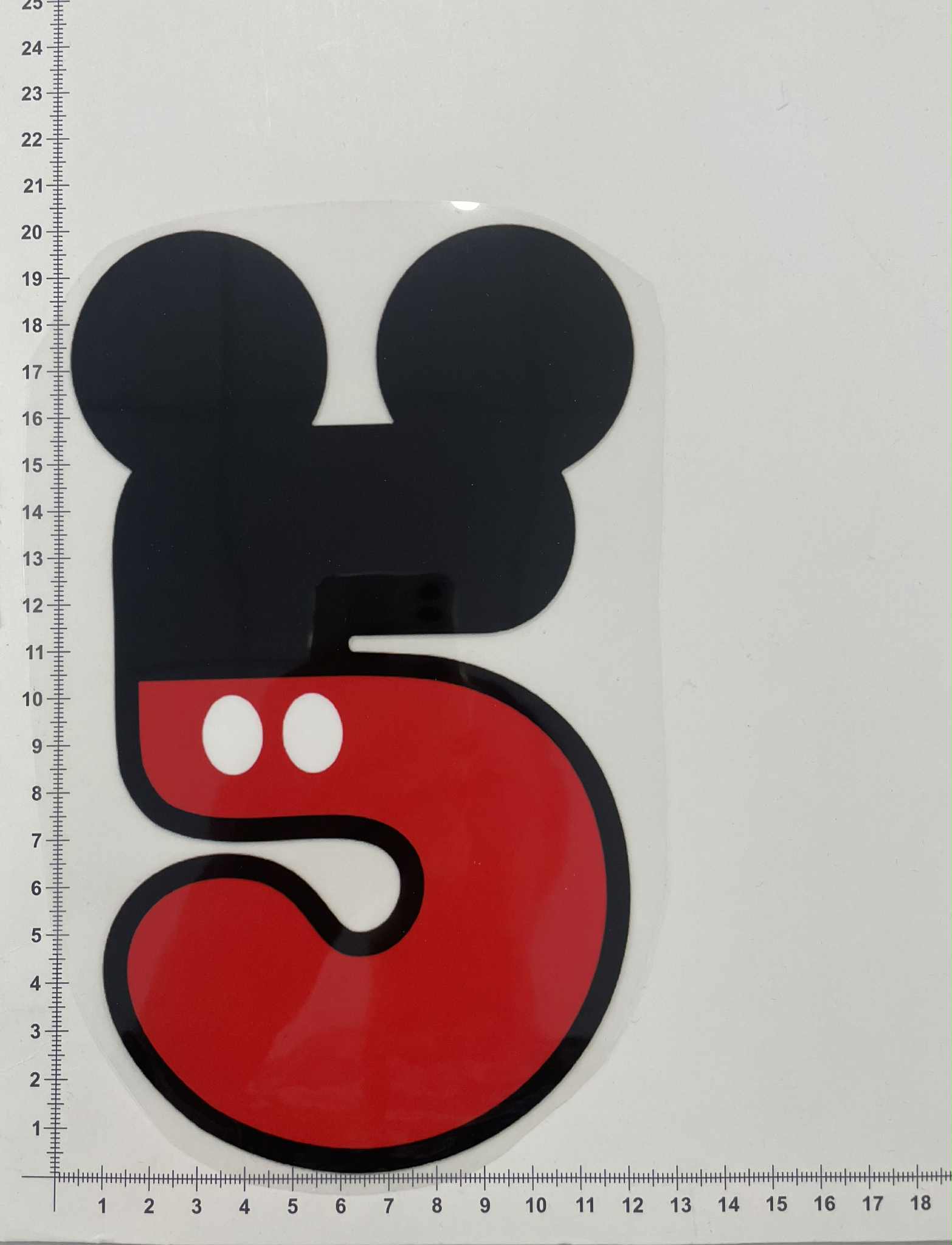 Termoaplikacija skaičius 5, didelė – tai dekoratyvinė aplikacija, prilyginama lygintuvu. Ši aplikacija yra su termo sluoksniu kitoje pusėje. Aplikacija labai lengvai pritvirtinama lygintuvo pagalba – ją tereikia pridėti prie rūbo, o termo sluoksnyje esantys klijai ima lydytis nuo lygintuvo karščio. Alikaciją reikia pridėti prie norimos rūbo vietos, ją būtina uždengti audeklo gabalėliu ir tik tada lyginti karštu 130-150 laipsnių lygintuvu, be garų (apie 20-30 sekundžių).Šios termoaplikacijos tinka dekoruoti visus rūbus: palaidinukes, maikutes, sukneles, tunikas, marškinukus, liemenes, džemperius ar net kepures. Termoaplikacijos naujiems rūbams suteikti puošnumo, žaismingumo, išskirtinumo. Arba priešingai – atnaujina jau padėvėtus rūbus, užlopo nusidėvėjimus arba nepatinkančias rūbo vietas, defektus. Aplikacijos neturi amžiaus cenzo – jos tinka tiek vaikams, tiek ir suaugusiems. Aplikacijos būna įvairių dydžių bei spalvų. Niekada nedėkite lygintuvo tiesiai ant aplikacijos.