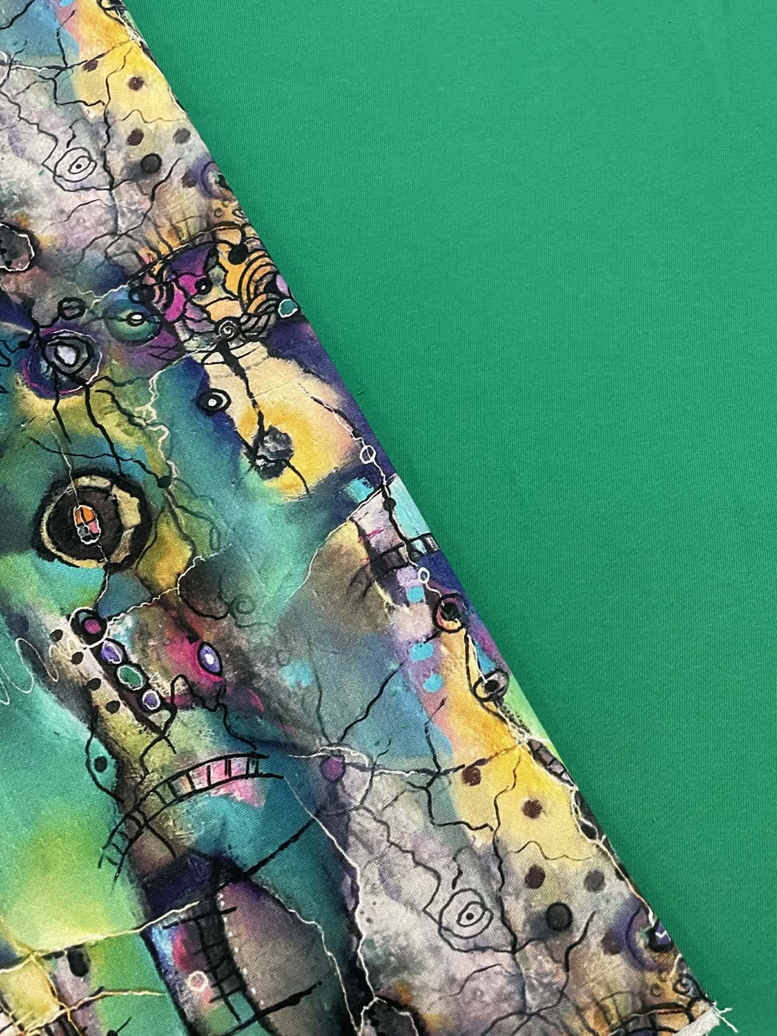 Trisiūlio kilpinio, skaitmeninės spaudos trikotažas ir trisiūlio trikotažo rinkinys Piešinys Spalvota skaitmeninė spauda šiuo metu yra vienas iš moderniausių spausdinimo metodų ant tekstilės. Tai ekologiška spauda, nes jos gamybai naudojami skaitmeninei spaudai skirti vandeniniai dažai. Spauda ypatingai švelni ir kokybiška – neatsiranda vaizdo įtrūkimų net trikotažą stipriai ištempus, spalvos neišblunka bei tarnauja kelerius metus. Tuo pačiu skaitmeninė spauda ypatinga savo beribe spalvine gama ir akį traukiančiomis spalvomis. Paveiksliukai pasižymi nepriekaištinga raiška ir vaizdu, dėl naudojamų aukštos kokybės dažų piešinėliai nebijo atmosferos pokyčių (karščio, drėgmės) ir juos drąsiai galima skalbti. Pats kilpinis trikotažas – šiuo metu populiariausia ir dažniausiai naudojama trikotažo rūšis. Kilpinis trikotažas yra kokybiška, viengubo mezgimo medžiaga. Dėl savo elastingumo, malonumo, purumo ir paklusnumo siuvant šis audinys ypatingai tinka siūti laisvalaikio rūbams: sportiniams kostiumams, tunikoms, palaidinukėms, džemperiams, kelnėms, tamprėms, kepurėms, movoms ir pan. Kilpinis trikotažas yra neplonas, tvirtas ir kokybiškas, todėl tinka įvairių rūbų siuvimui ne tik suaugusiems, bet ir vaikams bei kūdikiams. Iš šios medžiagos pasiūti drabužiai malonūs dėvėti, patvarūs, paprastai skalbiami ir puikiai sugeriantys bei išgarinantys drėgmę, leidžiantys kūnui kvėpuoti.