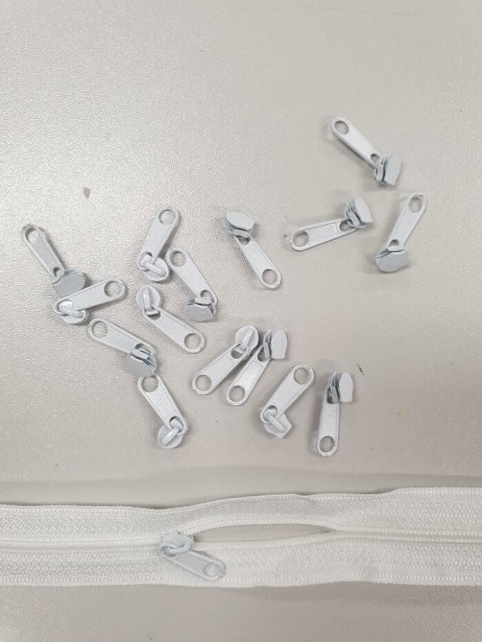 Užtrauktuko galvutė #3, balta. Tinka matuojamiems ir paprastiems užtrauktukams.