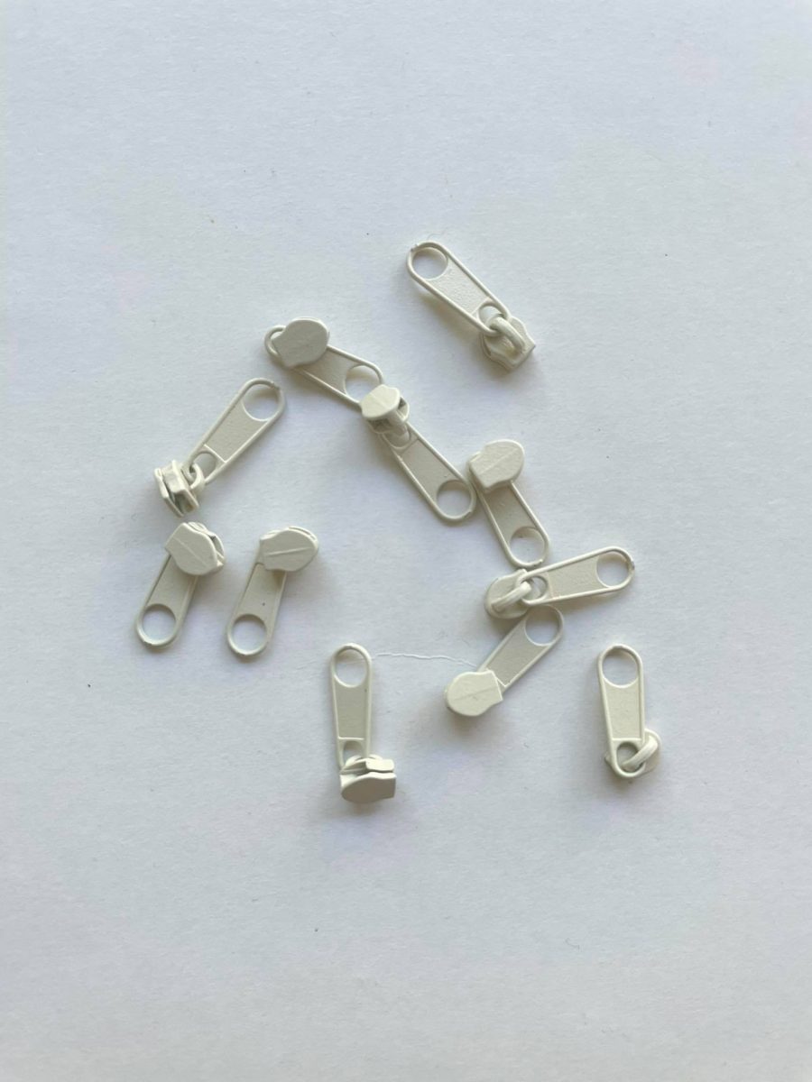 Užtrauktuko galvutė #3, kreminė. Tinka matuojamiems ir paprastiems užtrauktukams.