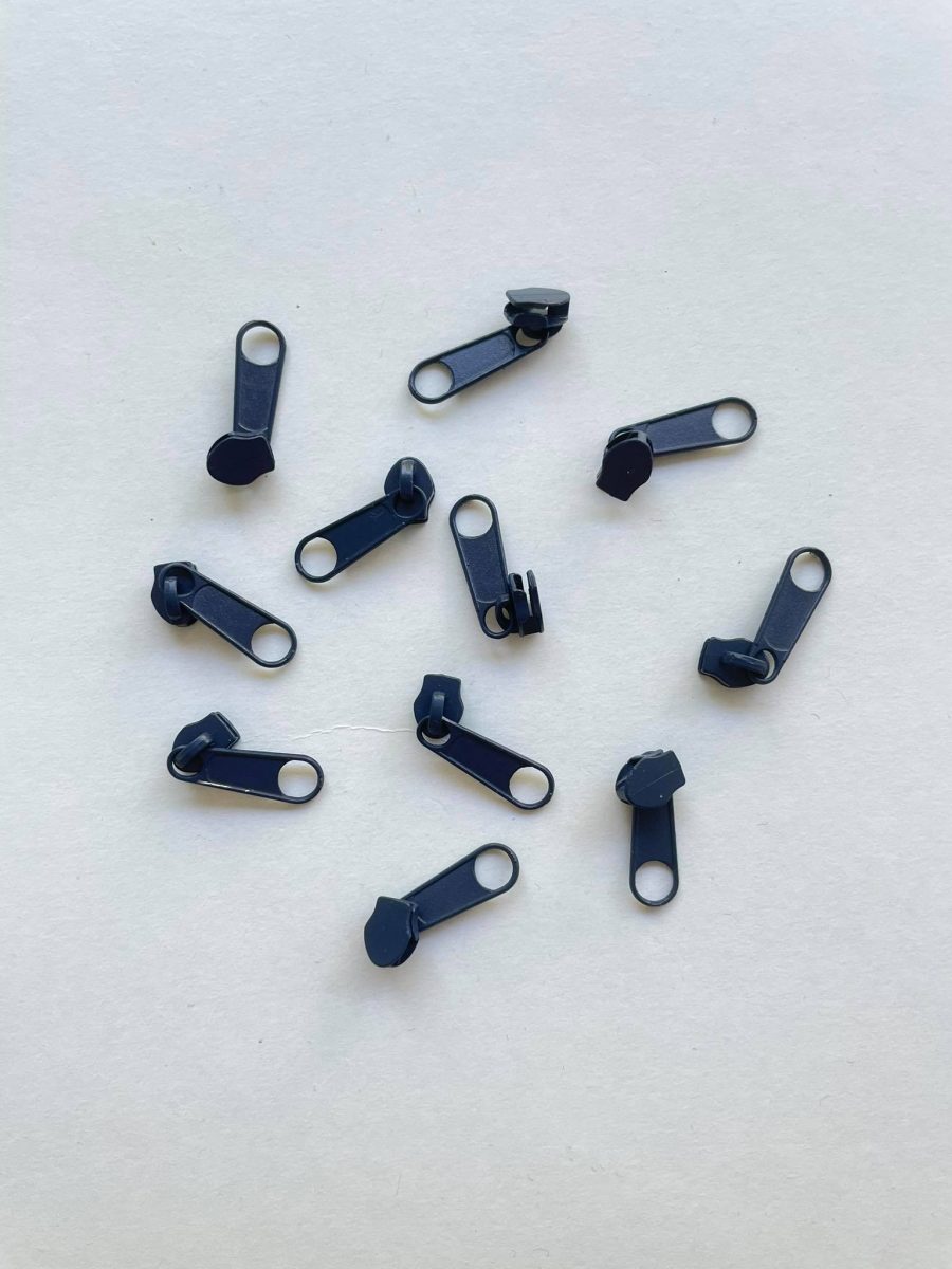 Užtrauktuko galvutė #3, tamsiai mėlyna. Tinka matuojamiems ir paprastiems užtrauktukams.