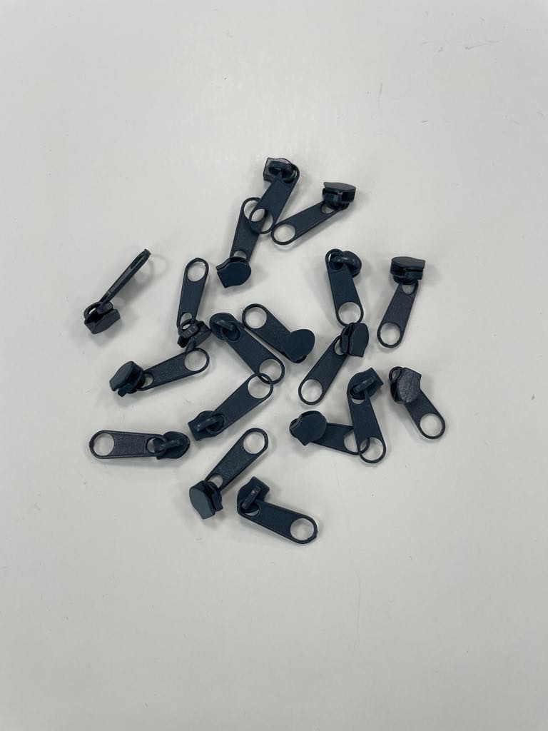 Užtrauktuko galvutė #3, tamsiai pilka. Tinka matuojamiems ir paprastiems užtrauktukams.