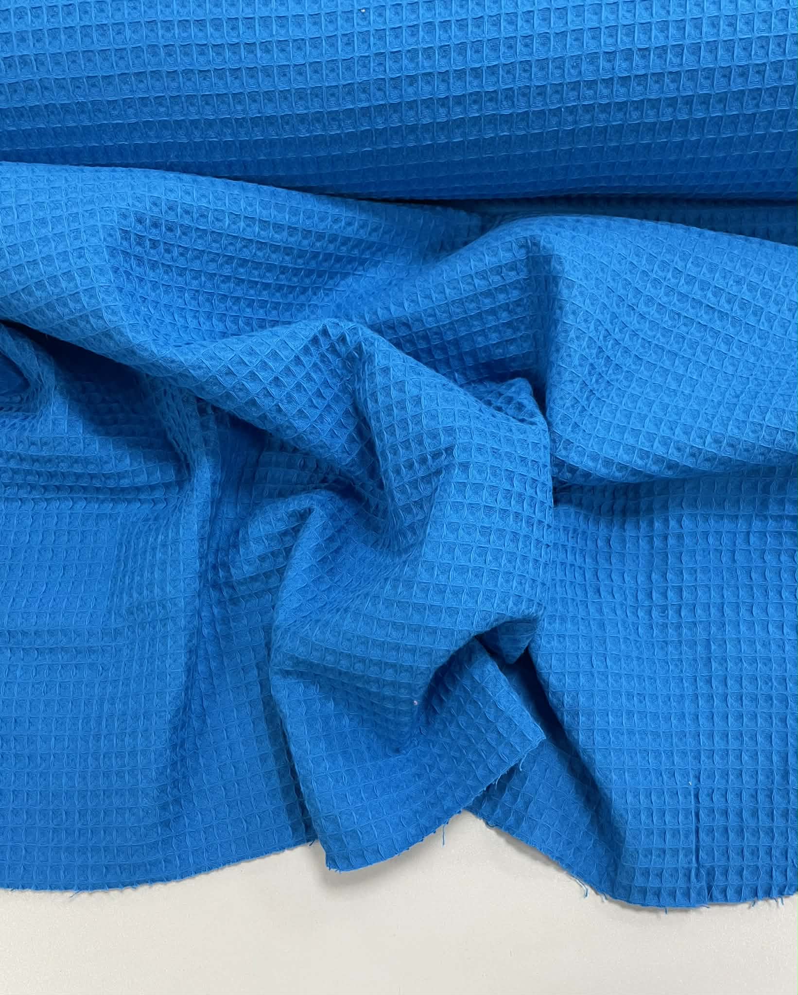 Vaflinis audinys, Mėlynas – tai išskirtinės struktūros, malonus ir švelnus 100 % medvilninis audinys. Šis audinys dažniausiai naudojamas chalatų, rankšluosčių bei virtuvinių rankšluostukų siuvimui, nes puikiai sugeria įvairius skysčius. Taip pat galima naudoti ir patalynių, pledų ar vaikiškų žaislų siuvimui.