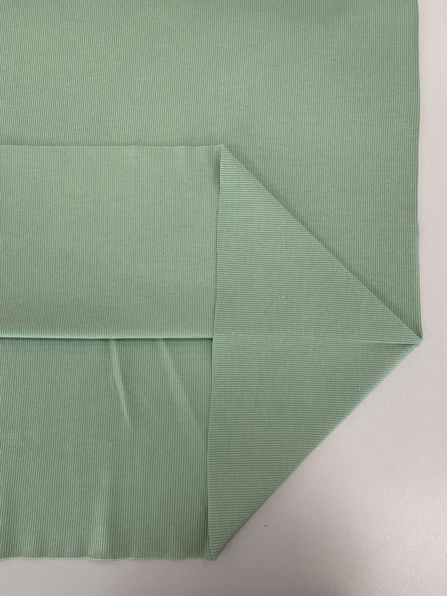 Vidutinio storumo Rib trikotažas Pistacijų – labai elastingas medvilninis audinys, panašus į megztą gumą. Audinys gaminamas iš medvilnės, tačiau jo sudėtyje yra nemažai elastano. Elastanas suteikia audiniui daugiau tamprumo, o pasiūtam rūbui padeda išsaugoti pradinę formą. Rib trikotažas ne tik natūralus bei malonus audinys, bet ir gerai sugeria bei išgarina drėgmę. Šis trikotažas dažniausiai naudojamas rūbų apdailai – rankogaliams, apykaklėms, kelnių klešnių apačioms užbaigti, ir pan. Kelnių juosmuo, apsiūtas šiuo elastingu trikotažu laikysis tvirčiau ant klubų. Pižamos rankogaliai ir kelnių apačia apsiūta tampriu trikotažu vaikučiui nesmuks ir jo neerzins, vaikas jausis patogiai ir maloniai. Tačiau iš šios medžiagos galima siūti ir sukneles, golfus, sijonus, bliuzonus, kepures. Rūbai iš šio trikotažo nesiglamžo, išskalbus išlaiko savo pradinę formą ir spalvą. Rib trikotažas internetu – tai aukščiausios kokybės, vidutinio storumo, tačiau ypatingai tamprus, minkštas, tvirtas ir malonus trikotažas. Kadangi šis trikotažas yra sertifikuotas, todėl tinkamas siūti ne tik suaugusiųjų rūbams, bet ir vaikams bei kūdikiams. Šis Rib trikotažas yra plonesnis, minkštesnis, todėl labai tinka vasariniams rūbams. Jį drąsiai galima derinti ir su plonu trikotažu (jersiu).