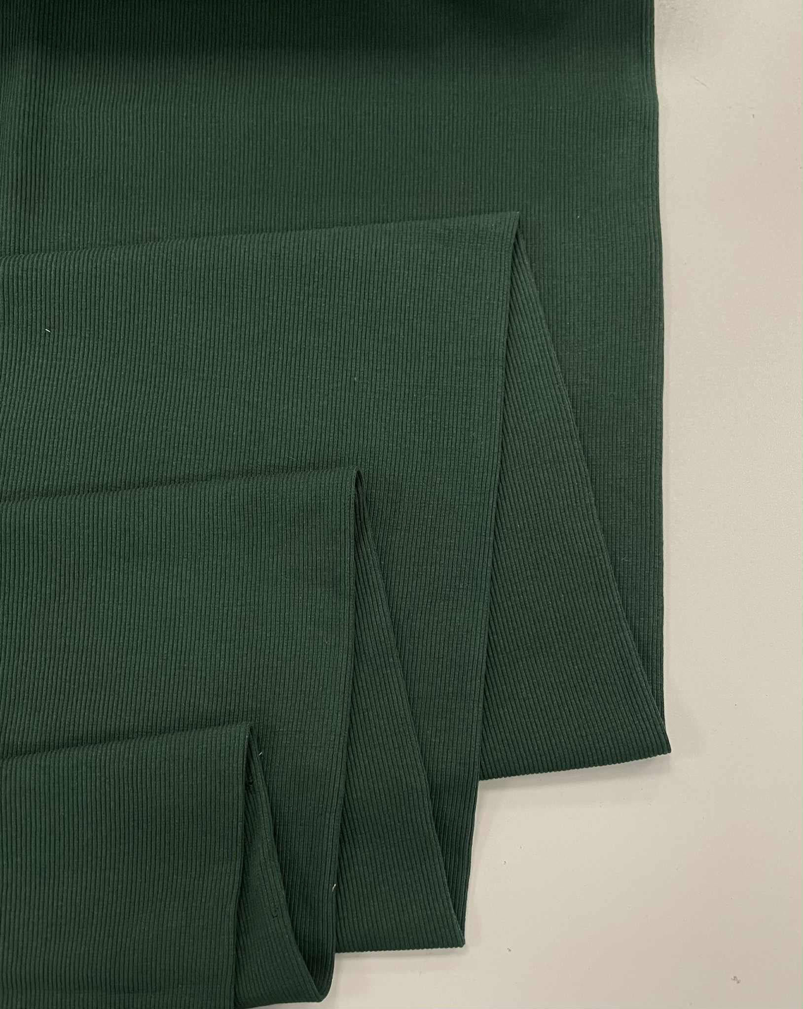 Vidutinio storumo rib trikotažas Smaragdinis – labai elastingas medvilninis audinys, panašus į megztą gumą. Audinys gaminamas iš medvilnės, tačiau jo sudėtyje yra nemažai elastano. Elastanas suteikia audiniui daugiau tamprumo, o pasiūtam rūbui padeda išsaugoti pradinę formą. Rib trikotažas ne tik natūralus bei malonus audinys, bet ir gerai sugeria bei išgarina drėgmę. Šis trikotažas dažniausiai naudojamas rūbų apdailai – rankogaliams, apykaklėms, kelnių klešnių apačioms užbaigti, ir pan. Kelnių juosmuo, apsiūtas šiuo elastingu trikotažu laikysis tvirčiau ant klubų. Pižamos rankogaliai ir kelnių apačia apsiūta tampriu trikotažu vaikučiui nesmuks ir jo neerzins, vaikas jausis patogiai ir maloniai. Tačiau iš šios medžiagos galima siūti ir sukneles, golfus, sijonus, bliuzonus, kepures. Rūbai iš šio trikotažo nesiglamžo, išskalbus išlaiko savo pradinę formą ir spalvą. Rib trikotažas  – tai aukščiausios kokybės, vidutinio storumo, tačiau ypatingai tamprus, minkštas, tvirtas ir malonus trikotažas. Kadangi šis trikotažas yra sertifikuotas, todėl tinkamas siūti ne tik suaugusiųjų rūbams, bet ir vaikams bei kūdikiams. Šis Rib trikotažas yra vidutinio storumo, tinka vasariniams rūbams.