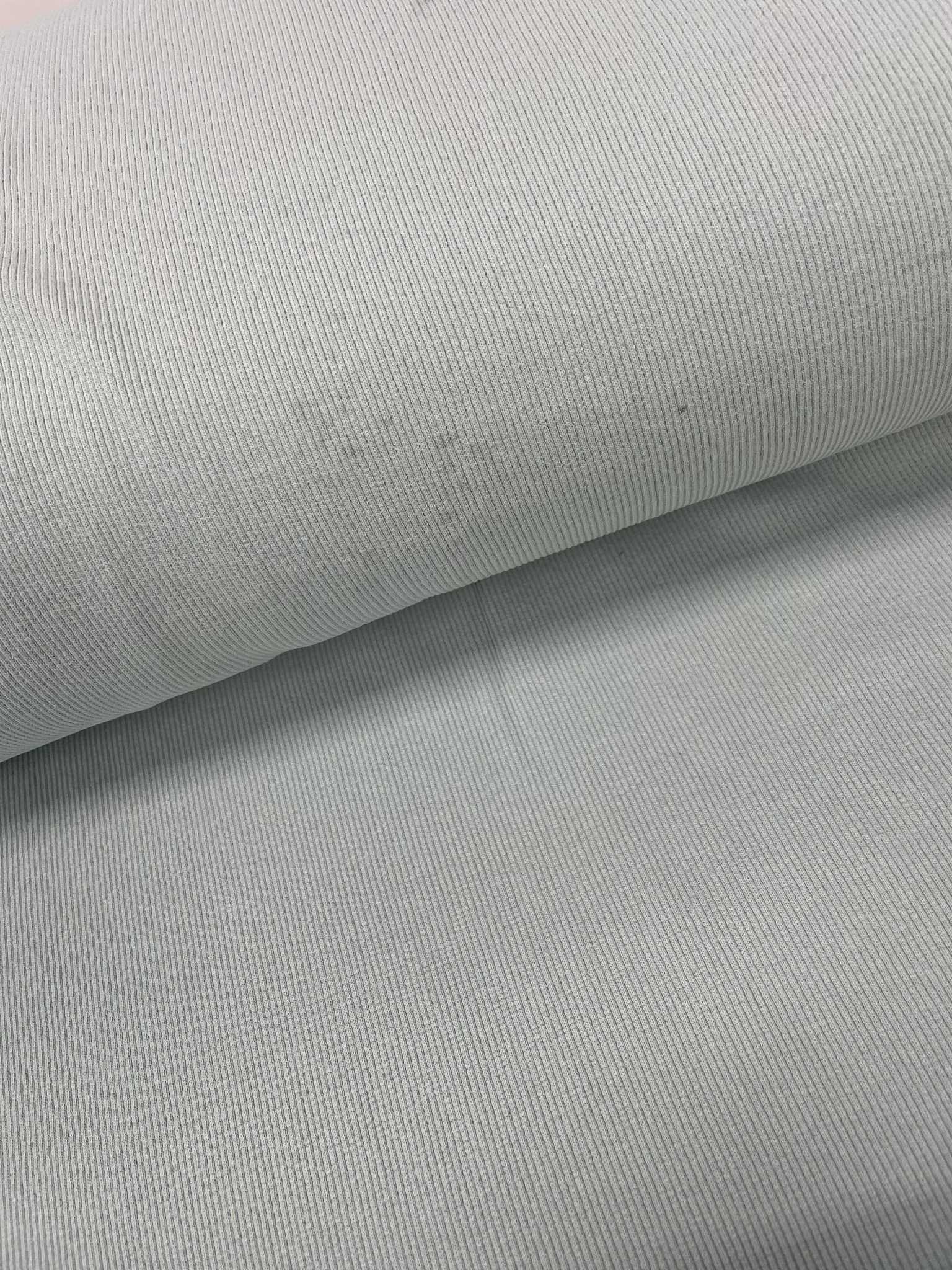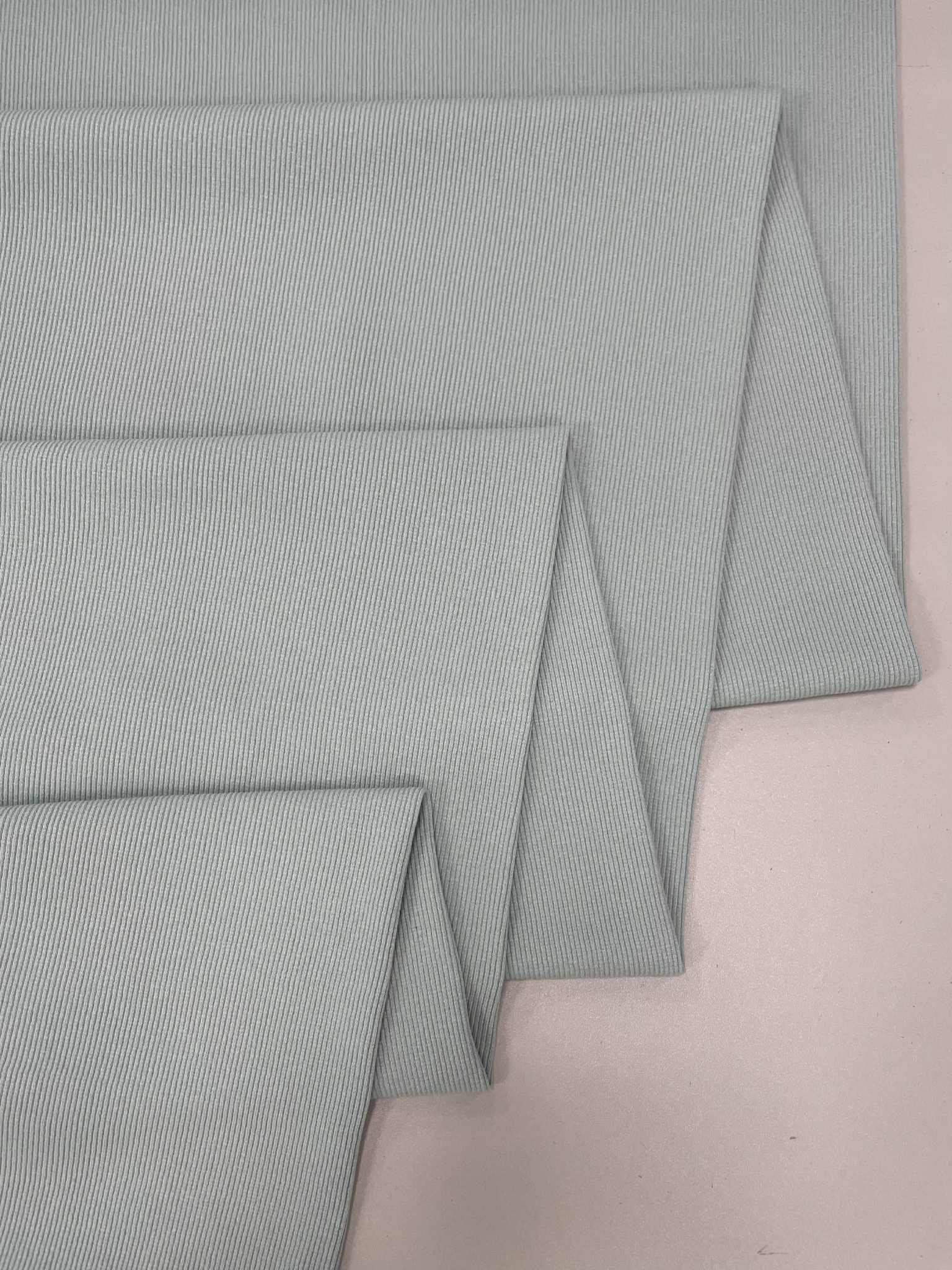 Vidutinio storumo rib trikotažas Šviesi Akvamarino – labai elastingas medvilninis audinys, panašus į megztą gumą. Audinys gaminamas iš medvilnės, tačiau jo sudėtyje yra nemažai elastano. Elastanas suteikia audiniui daugiau tamprumo, o pasiūtam rūbui padeda išsaugoti pradinę formą. Rib trikotažas ne tik natūralus bei malonus audinys, bet ir gerai sugeria bei išgarina drėgmę. Šis trikotažas dažniausiai naudojamas rūbų apdailai – rankogaliams, apykaklėms, kelnių klešnių apačioms užbaigti, ir pan. Kelnių juosmuo, apsiūtas šiuo elastingu trikotažu laikysis tvirčiau ant klubų. Pižamos rankogaliai ir kelnių apačia apsiūta tampriu trikotažu vaikučiui nesmuks ir jo neerzins, vaikas jausis patogiai ir maloniai. Tačiau iš šios medžiagos galima siūti ir sukneles, golfus, sijonus, bliuzonus, kepures. Rūbai iš šio trikotažo nesiglamžo, išskalbus išlaiko savo pradinę formą ir spalvą. Rib trikotažas – tai aukščiausios kokybės, vidutinio storumo, tačiau ypatingai tamprus, minkštas, tvirtas ir malonus trikotažas. Kadangi šis trikotažas yra sertifikuotas, todėl tinkamas siūti ne tik suaugusiųjų rūbams, bet ir vaikams bei kūdikiams. Šis Rib trikotažas yra vidutinio storumo, tinka vasariniams rūbams.
